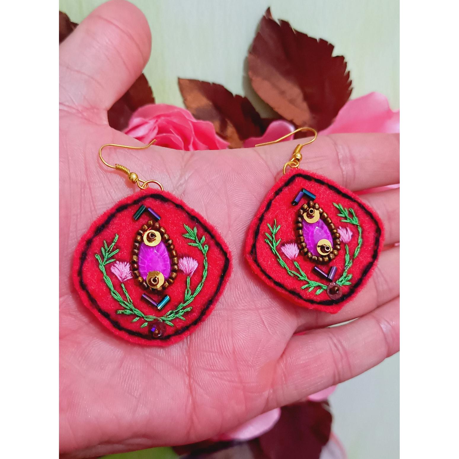 گوشواره نمدی گلدوزی و جواهر دوزی شده