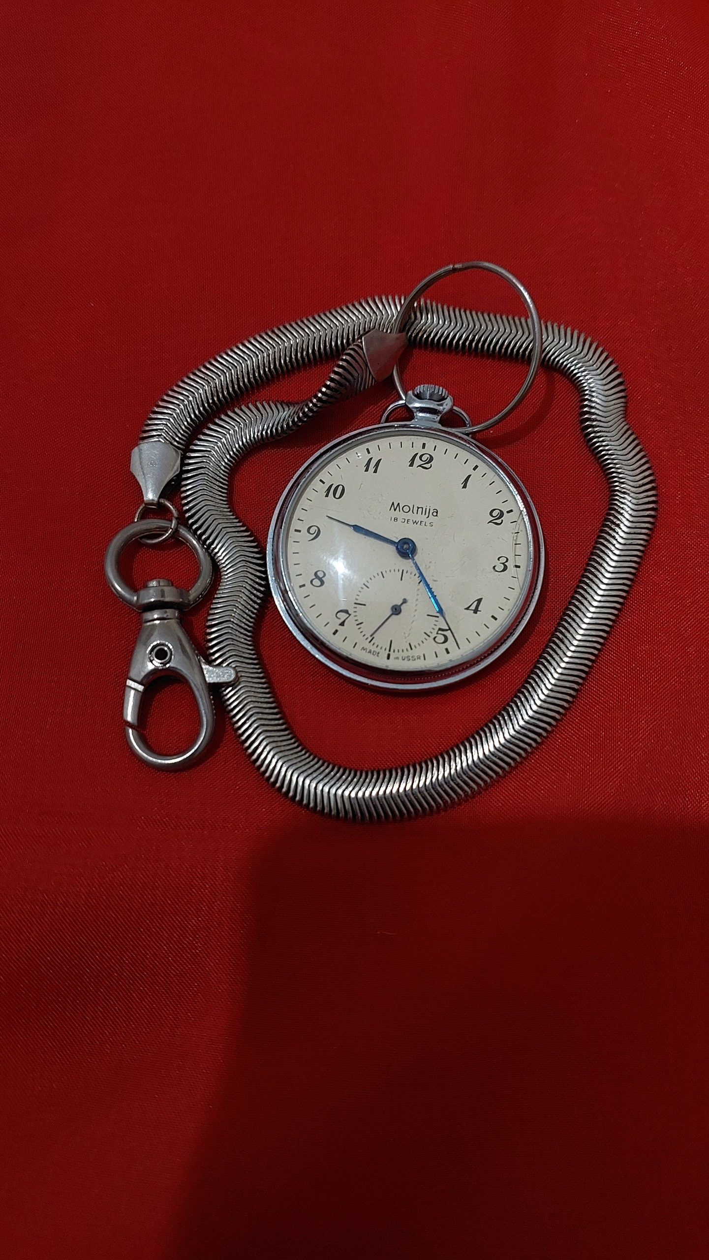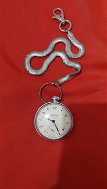 ساعت جیبی روسی صحیح و سالم در حال کار کردن بهمراه زنجیر تسمه ای بسیارزیبا