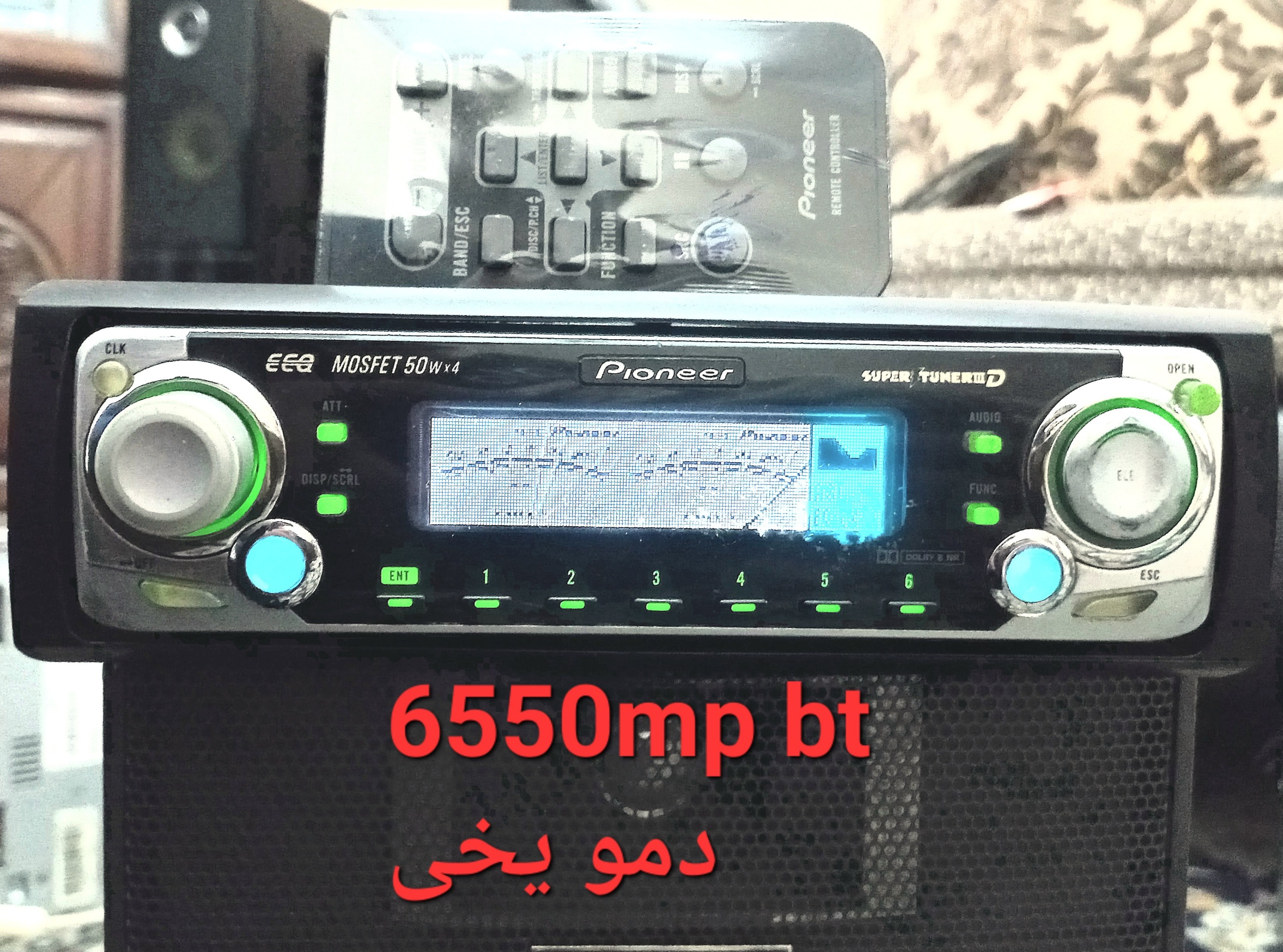 ضبط پایونیر 7550 ام پی استوک وارداتی 6 خروج بلوتوث شده دمو یخی قابلیت پخش سی دی رادیو آیوس و بلوتوث تمامی دستگاه استوک وارداتی سی دی نیاز به سرویس داره به دلیل استفاده نشدن مکرر و طولانی در حال حاضر ارور 11 میده لوازم سوکت برق و
