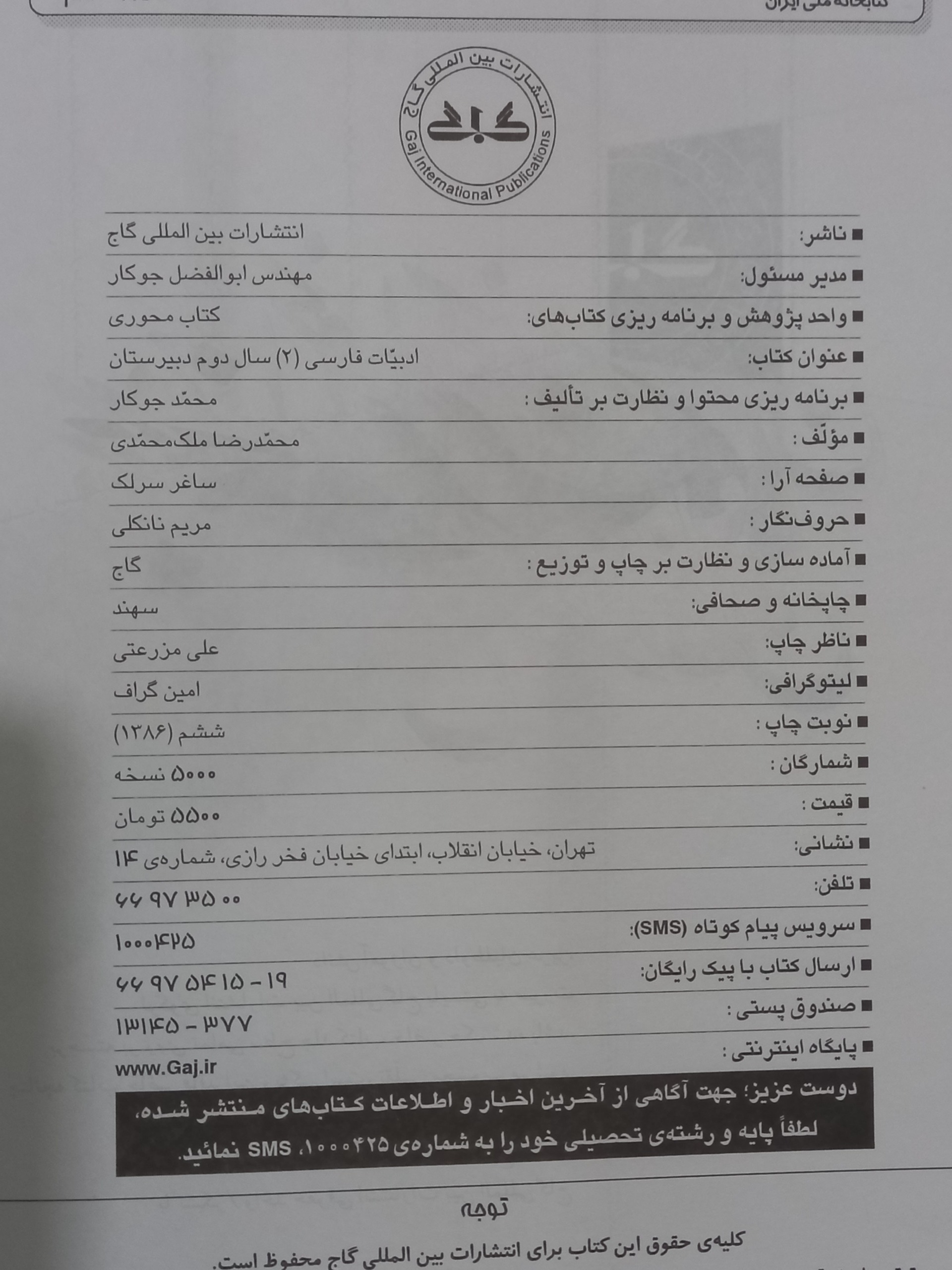 کتاب ادبیات فارسی 2 گاج- دوم دبیرستان