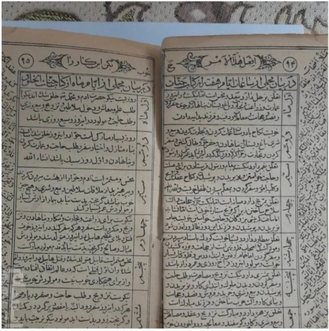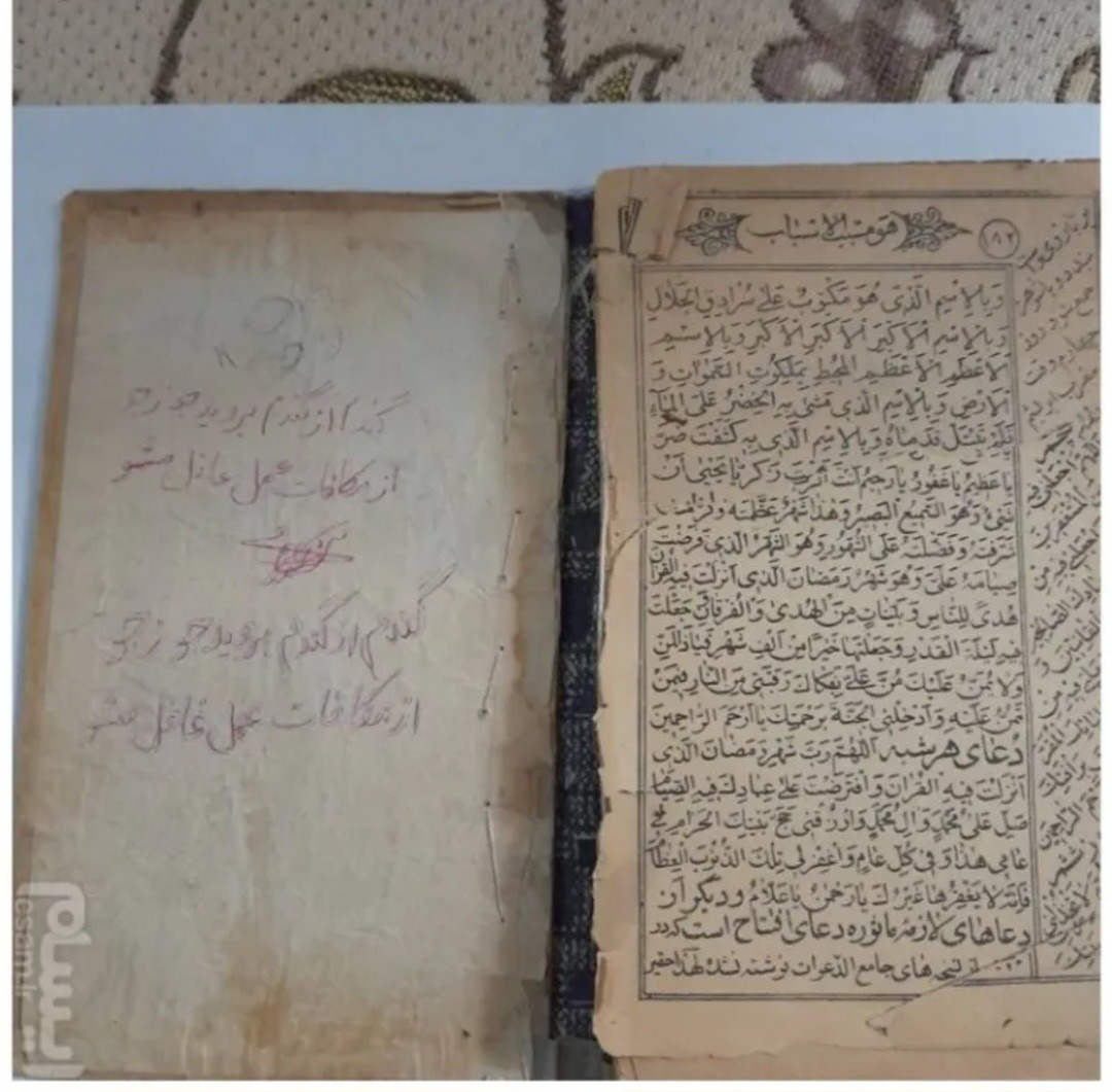 کتاب فوق بسیار قدیمی با جلد مقوا و شیرازه دست دوز