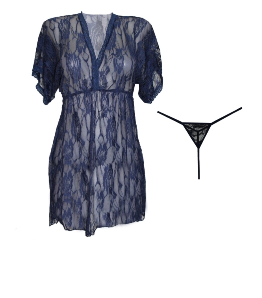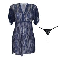 لباس خواب توری همراه با شورت سورمه ای رنگ