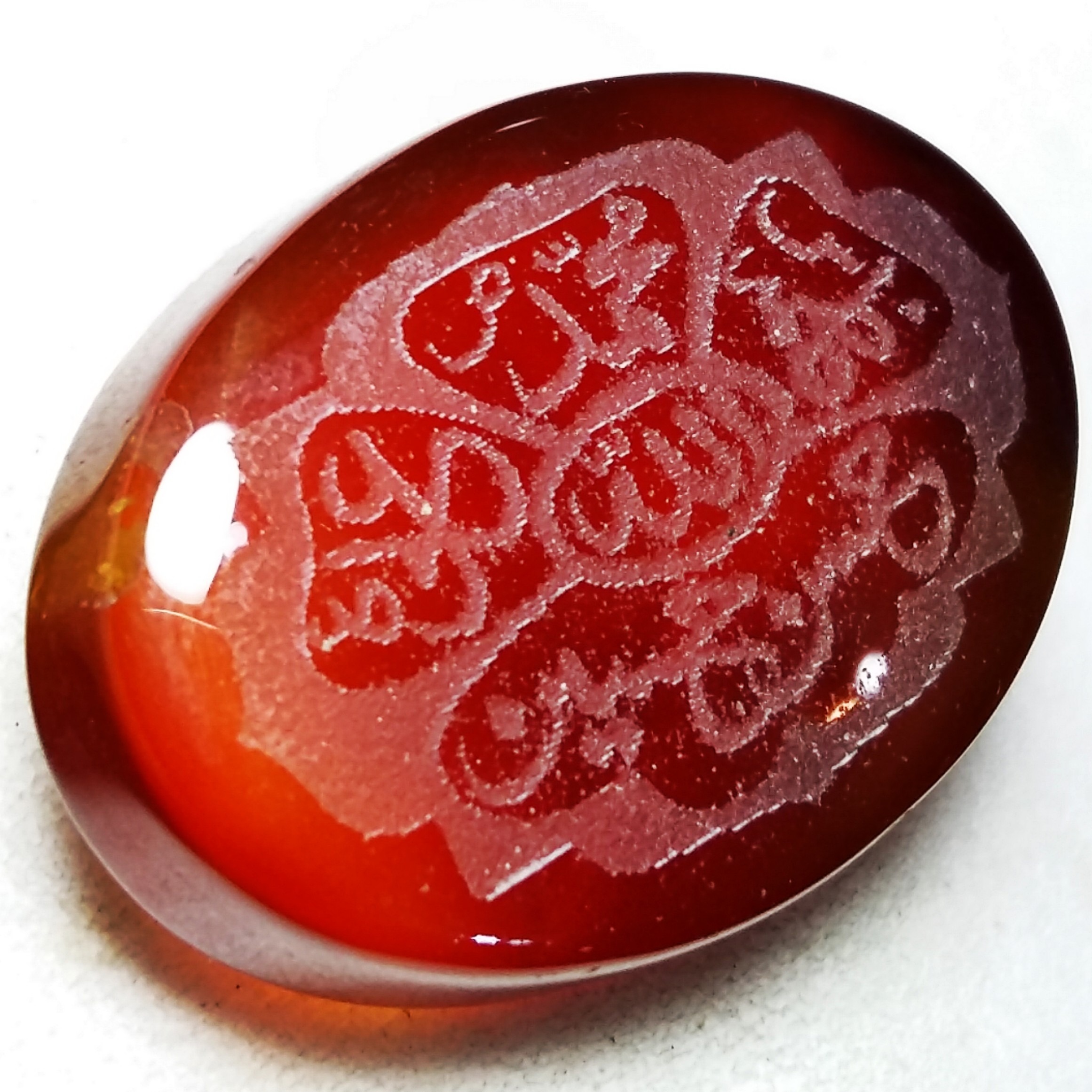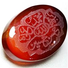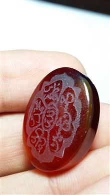 نگین عقیق آلبالویی معدنی زیبا حکاکی پنج تن