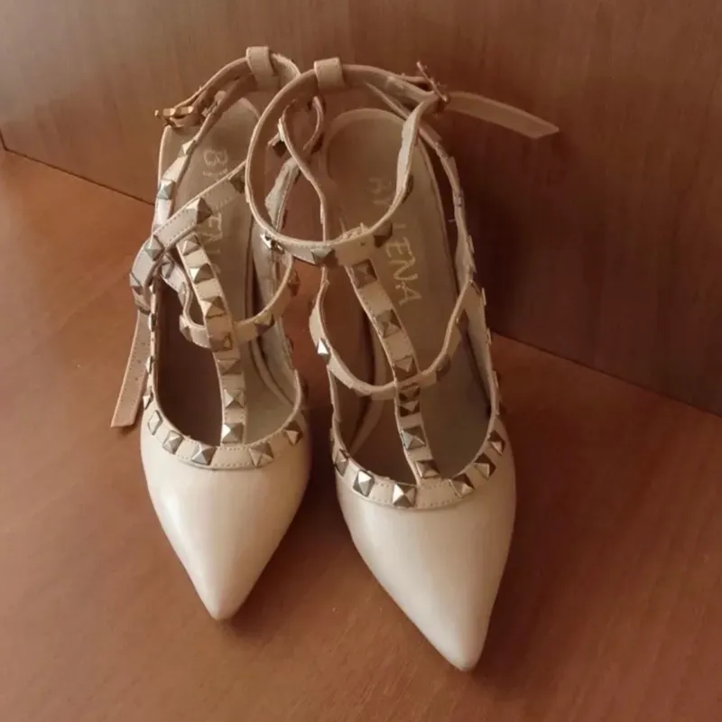کفش مجلسی کرم ولنتینو والنتینو پاشنه بلند کپی چرم