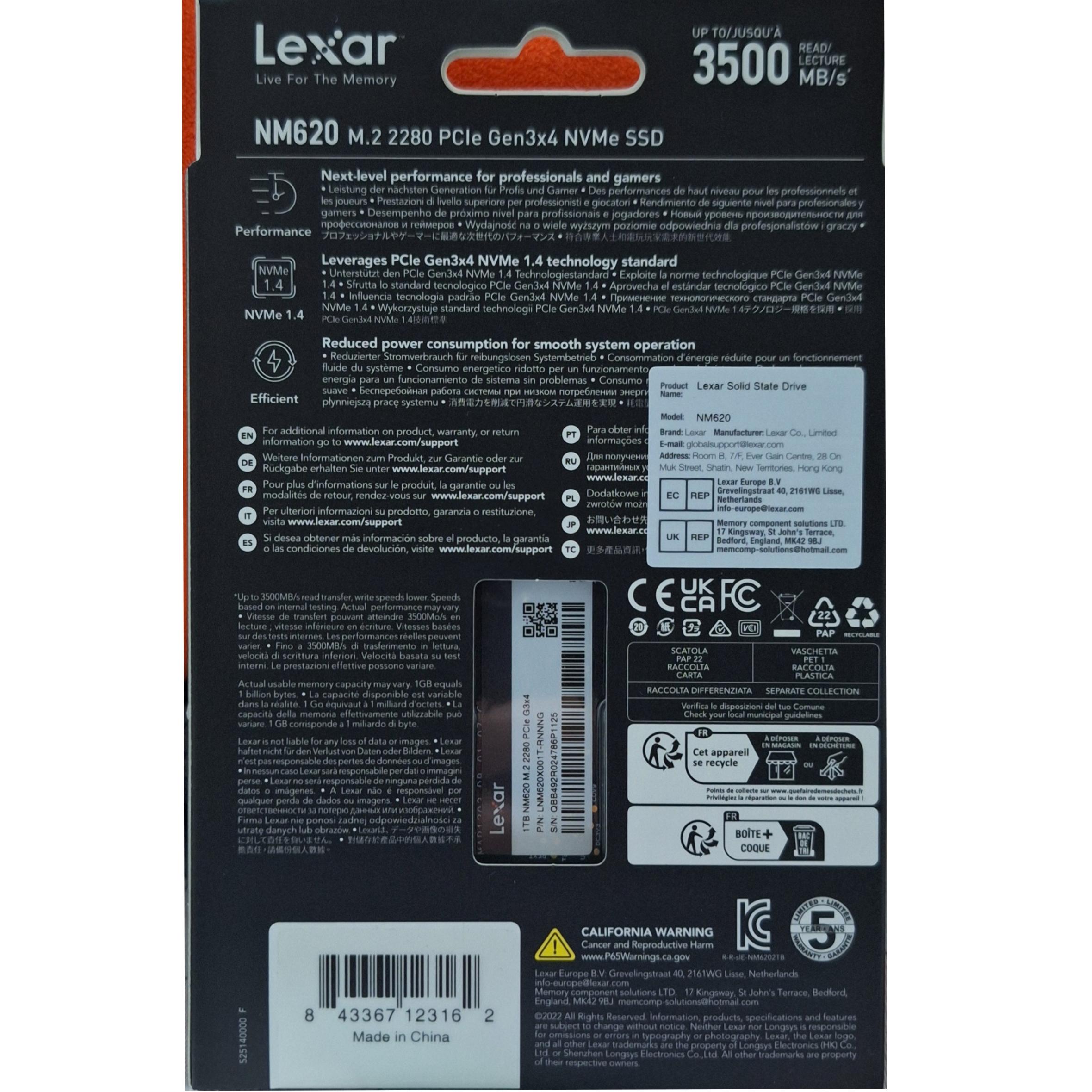 حافظه SSD لکسار مدل NM620 M.2 2280 NVMe یک حافظه SSD داخلی با سرعت بالا است که برای کامپیوترهای شخصی و لپ تاپهای مدرن طراحی شده است. این حافظه از رابط PCIe Gen3x4 استفاده میکند و سرعت خواندن و نوشتن ترتیبی تا 3500 و 3000 مگابایت بر ثانیه با طول عمر 1.5میلیون