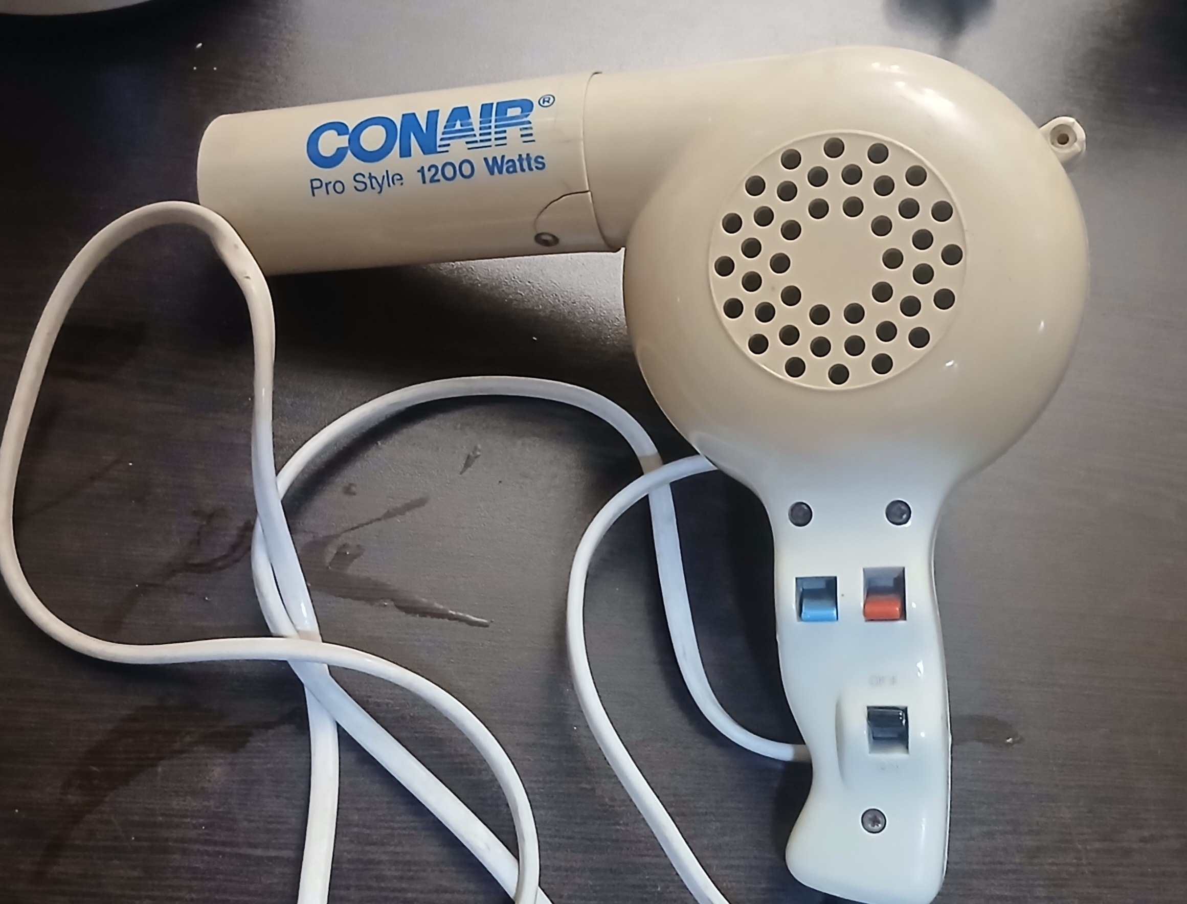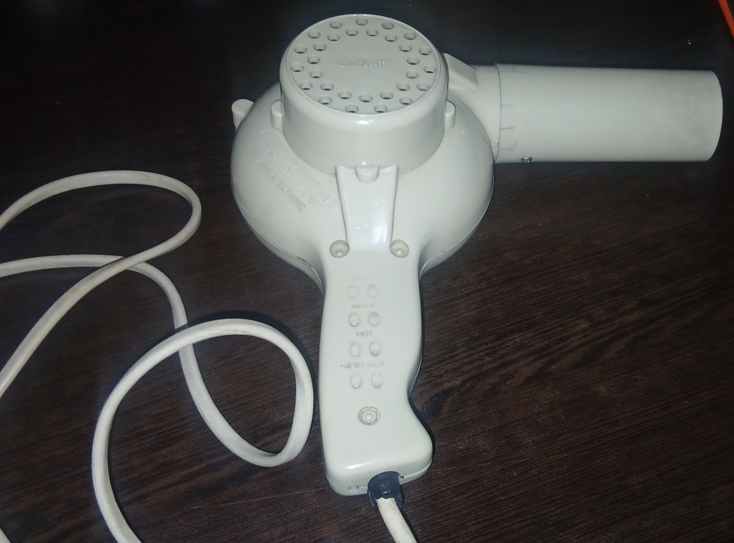 یک عدد سشوار قدیمی سالم و قابل کارکرد دارای دکمه سرد و گرم