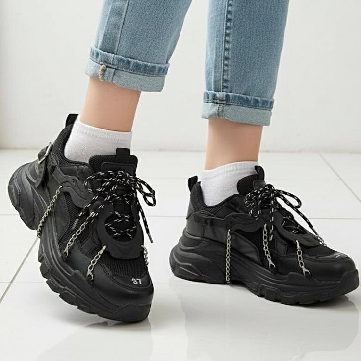 قابلیت برداشتن بند زنجیری تزئینی و همزمان استفاد کفش به عنوان یک کفش ساده(عکس هر دو مدل داخل تصاویر گذاشته شده است)