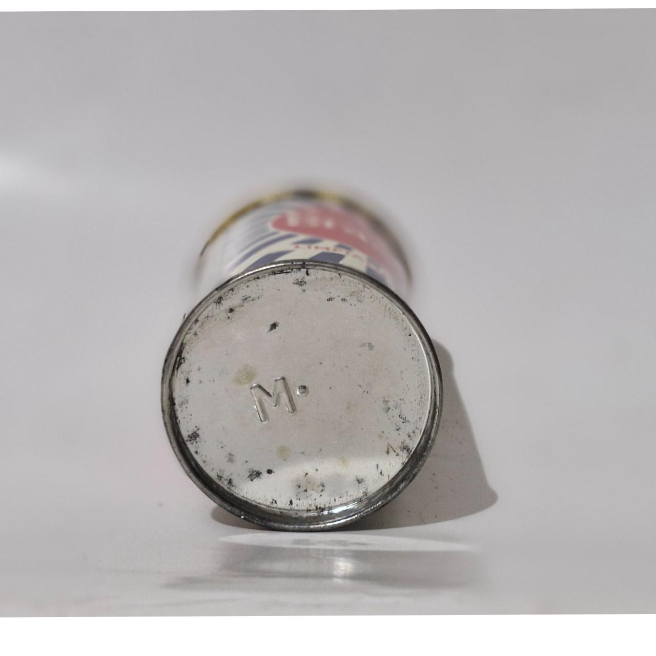 جنس اهن.وزن 38 گرم.ارتفاع 8 سانتیمتر.قطر 4 سانتیمتر.مطابق باتصاویر میفروشم.بخاطر قدمت ماده داخل قوطی بصورت جامد درومده.غیرقابل استفاده ست.