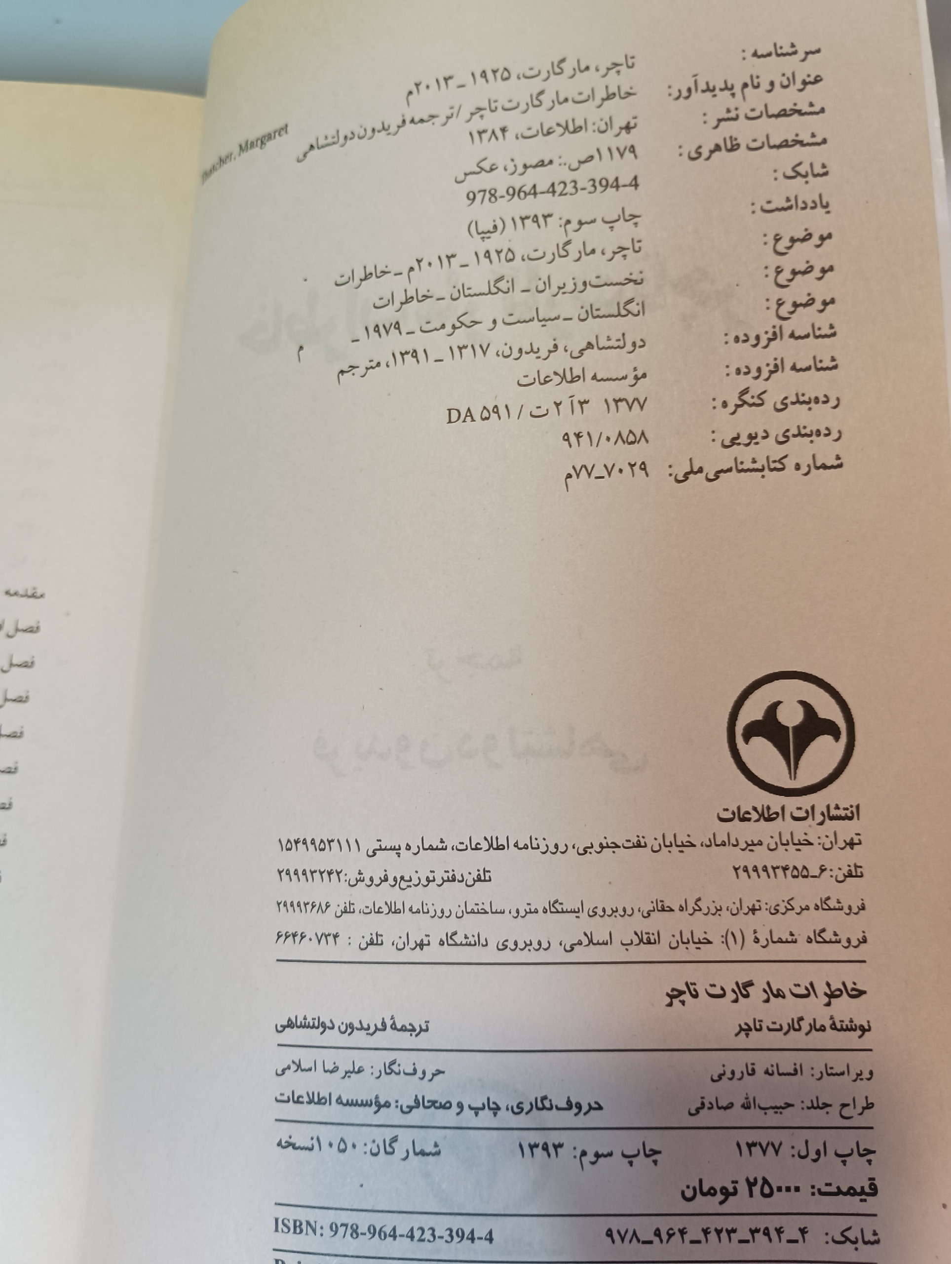 کتاب خاطرات مارگارت تاچر