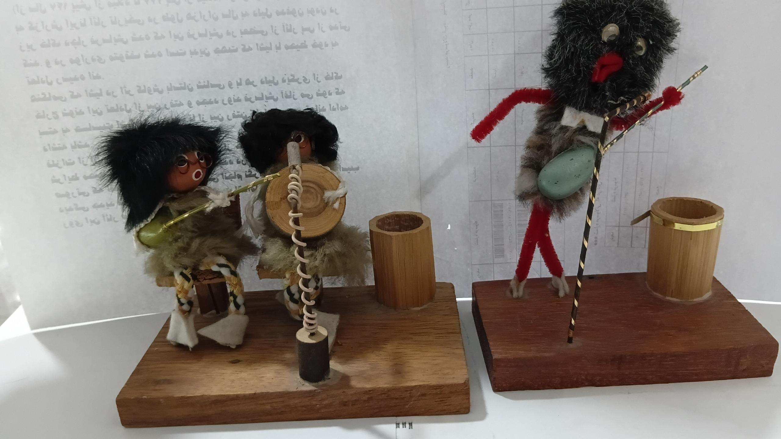 5عدد مجسمه چوبی گروه ارکستر توجه جنس چوب و پلاستیک و کاموا  و بالایی یکی شون مقوایی است