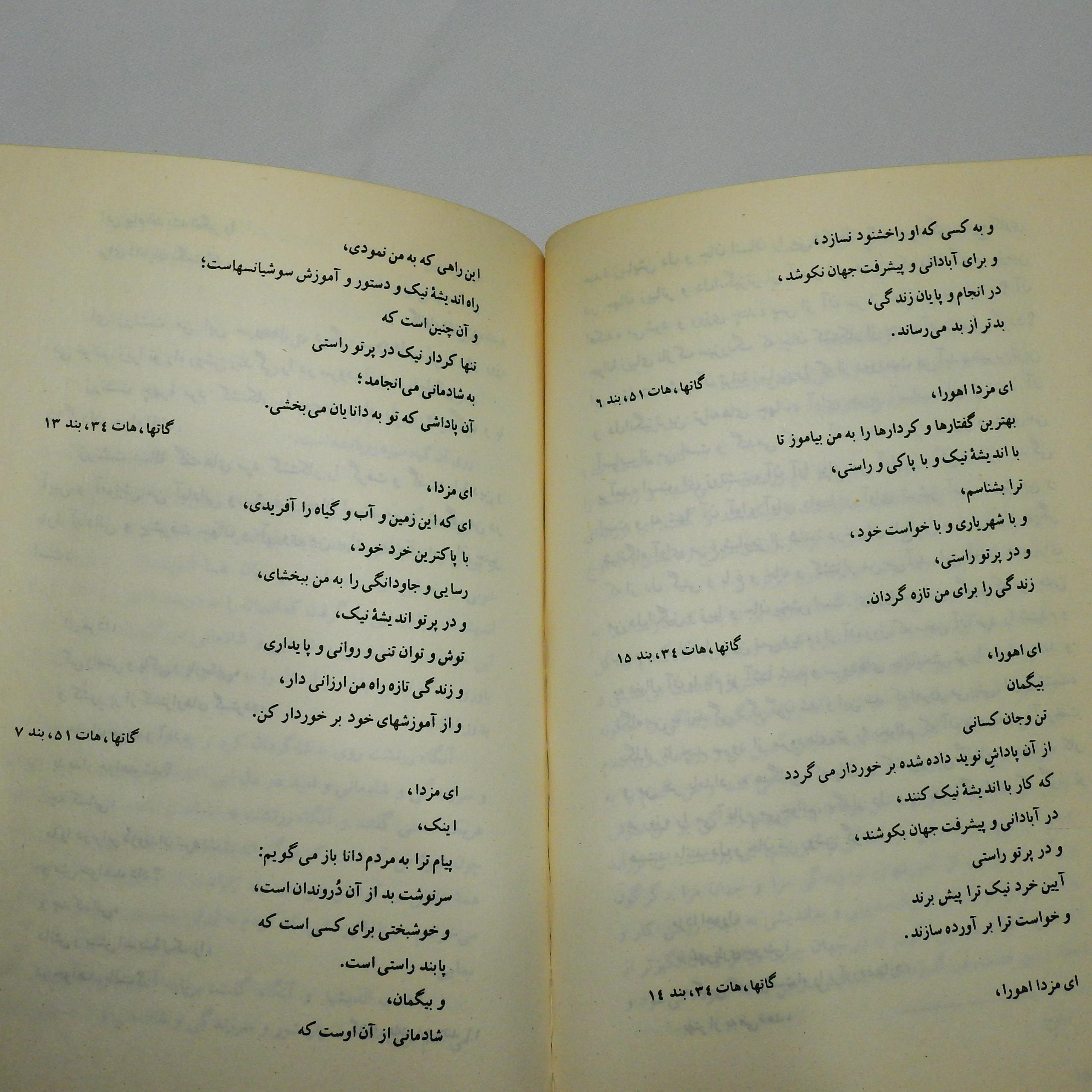 ای مزدا ، هنگامی که در آغاز با اندیشه خویش ، برای ما تن و خرد و یابش آفریدی وبه ما توانایی گفتار و کردار دادی ، خواستی که ما باور خویش را به دلخواه برگزینیم. ... مزدا اهورای همه توانا چنین برنهاده است که خوشبختی از آن اوست که به دیگران خوشبختی بخشد. من برای پیشرفت و نگاهداشتن آیین راستی ، خواهان استواری و توانایی هستم. ای پارسایی ، آن پرتوی را که پاداش زندگی نیک منشانه است ، به من ارزانی دار...