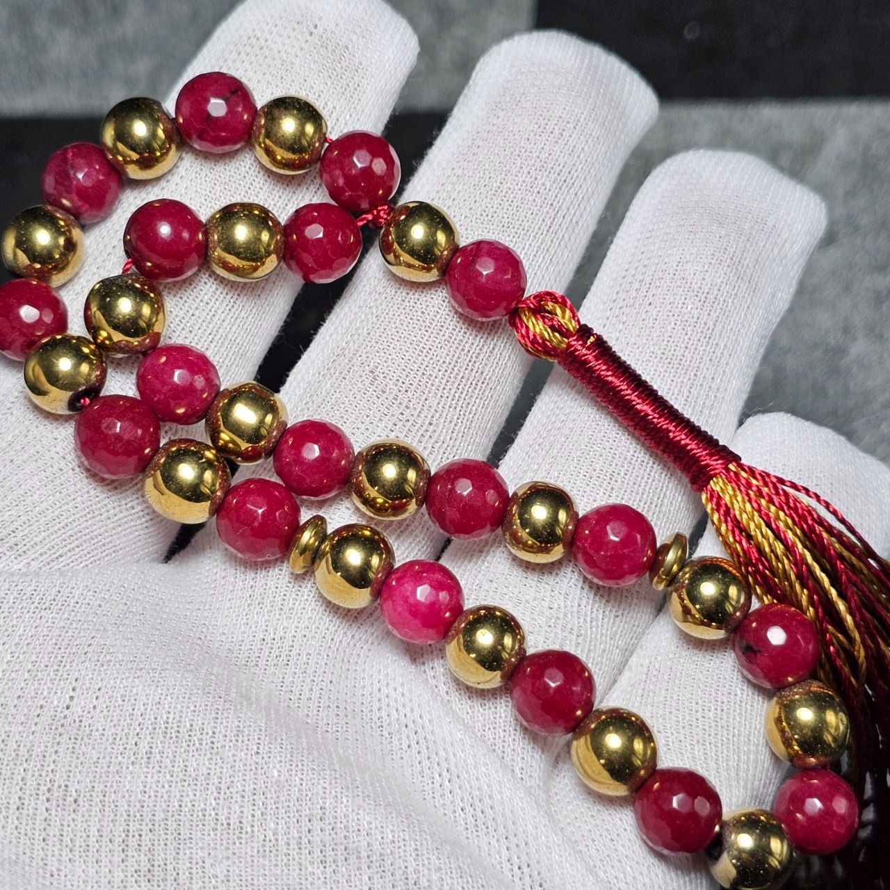 تسبیح 33 دانه سنگ جید یاقوتی و حدید کد 37080