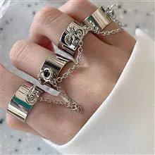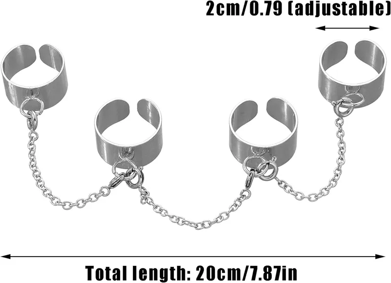 حلقه انگشت باز با زنجیر قابل تنظیم حلقه انگشت باز انگشتر با انگشتر گوتیک حلقه بند انگشتی حلقه پانک حلقه زنانه و انگشتر برای شخصیت خلاق زنان پانک شیک مردانه، آلیاژی، آلیاژی