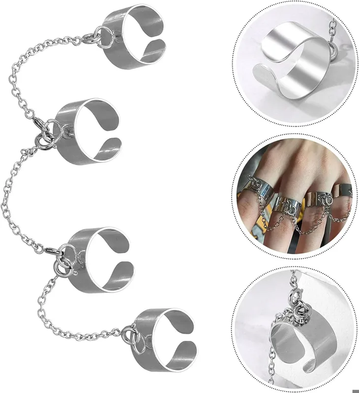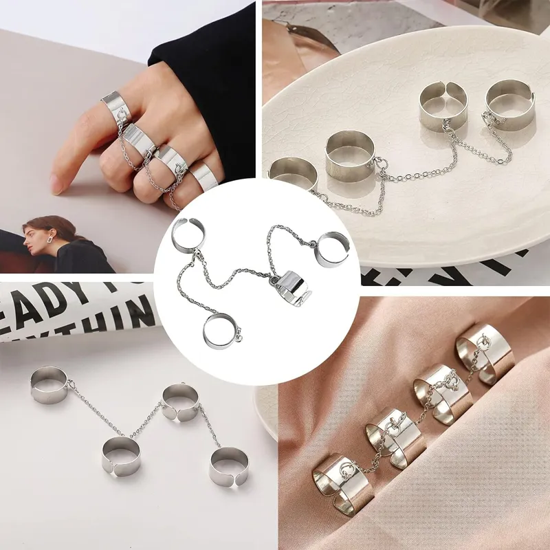 حلقه های انگشتی با زنجیر: حلقه زنجیری یک تکه، طراحی یکپارچهسازی با سیستمعامل، سبک پانک هیپ هاپ، انگشتان شما را زیبا می کند، حسی جدید به شما می بخشد و جذابیت جذابی را به وجود می آورد.