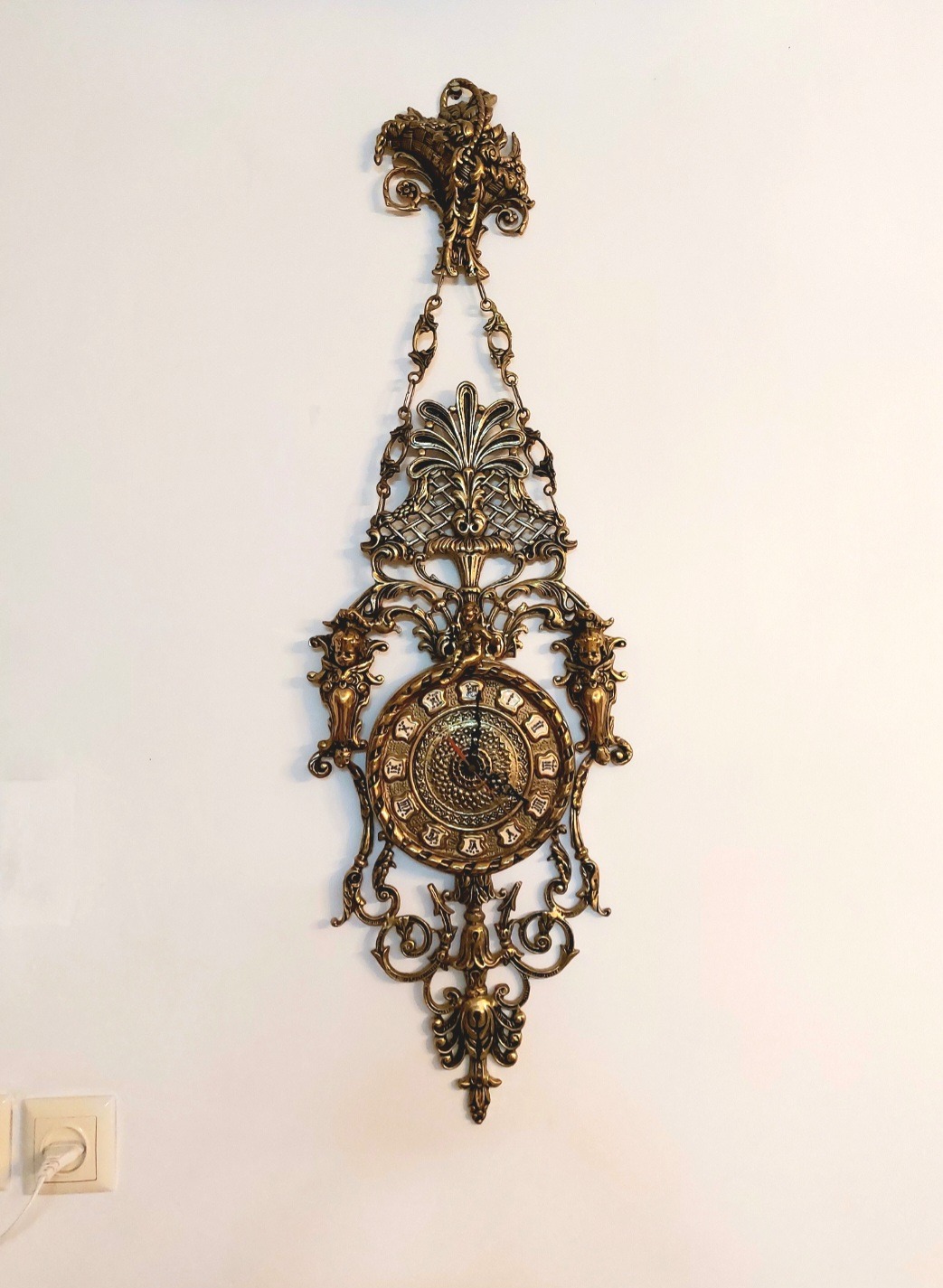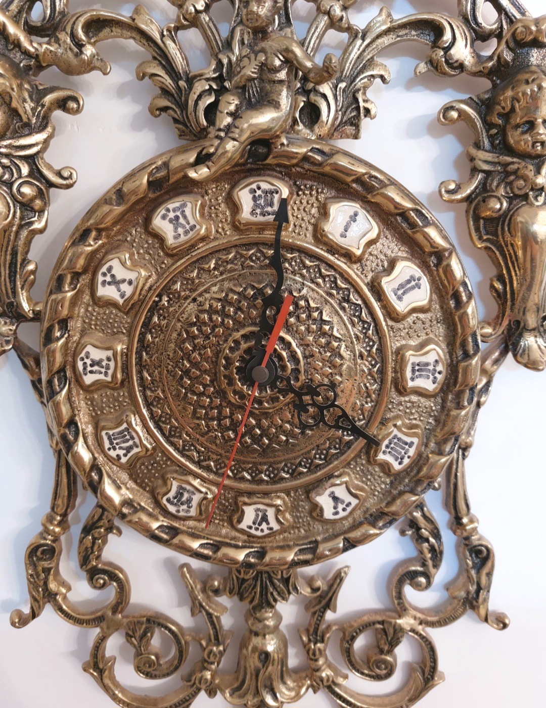 ساعت دیواری برنز قدیمی .طرح سیاه قلم .