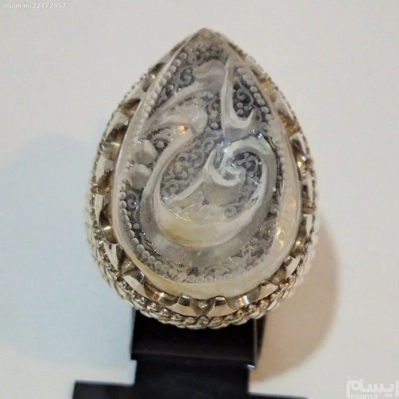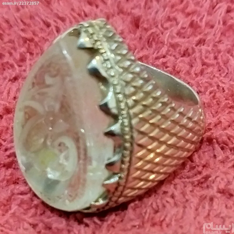 انگشتر نقره دست ساز با نگین در خطی کار دست