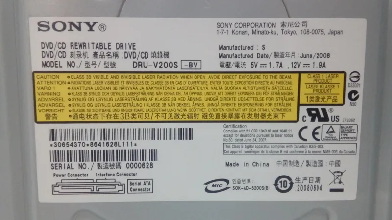 دی وی دی رایتر SONYمدلDRU-V200S- تر و تمیز-ساتا