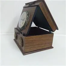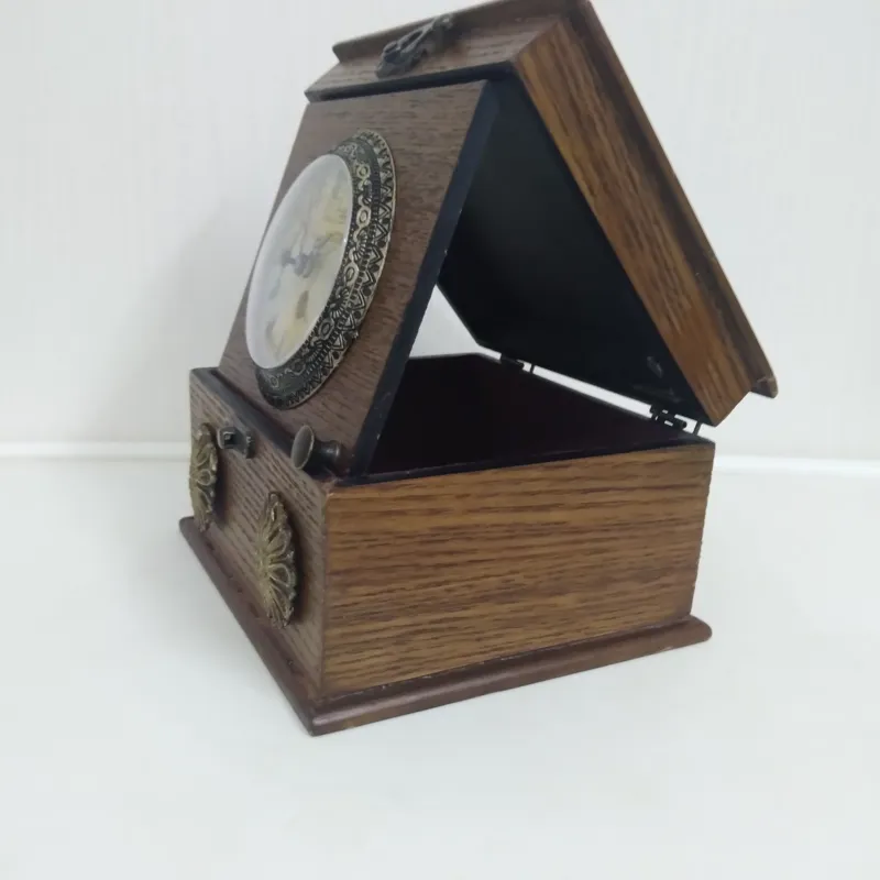 ساعت چوبی رومیزی بسیار نفیس و زیبا جعبه  دست ساز با موتور کوارتز که ساعت درون جعبه جمع میشه و به سقف جعبه میچسبه و از جعبه هم میشه به عنوان جعبه جواهرات استفاده کرد