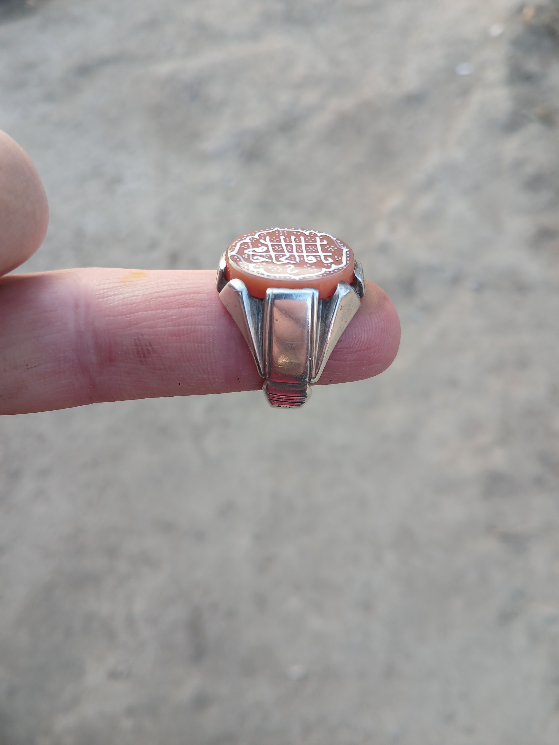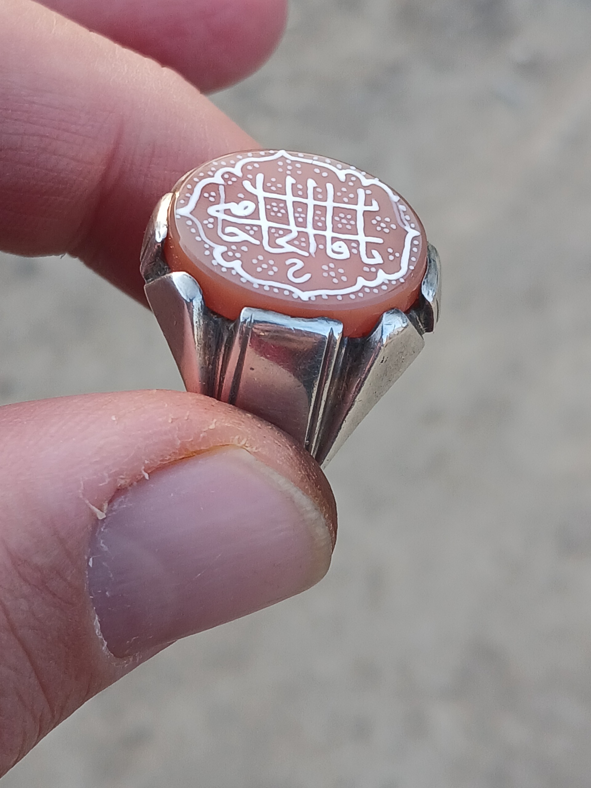 سلام انگشتر عقیق یمنی خط پیازی ذکر بسیار زیبا رکاب استاد فرقانی کاری کلکسیونی قدیمی