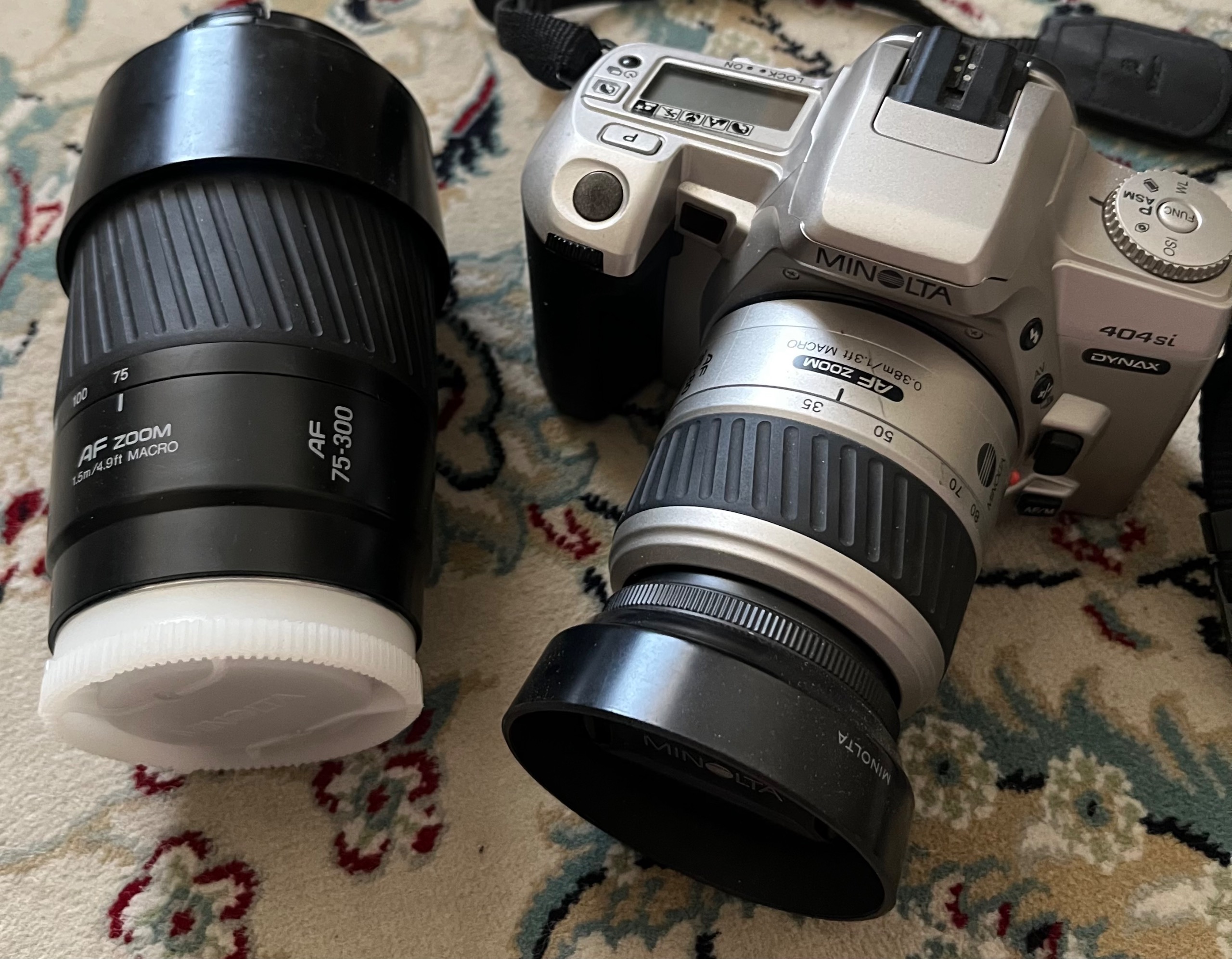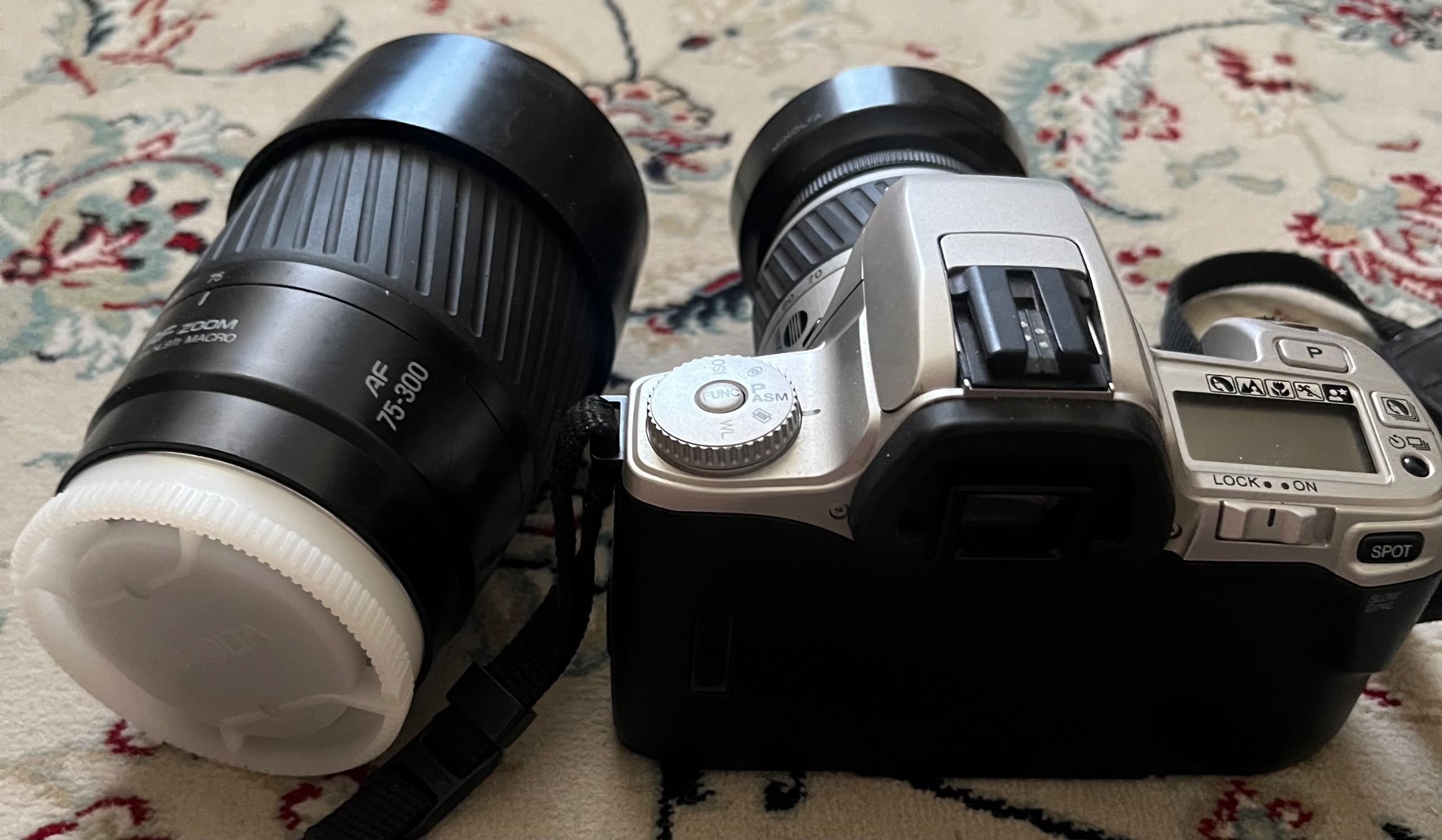 دوربین مینولتا همراه با لنز اضافی 300-75 مینولتا در حد نو
