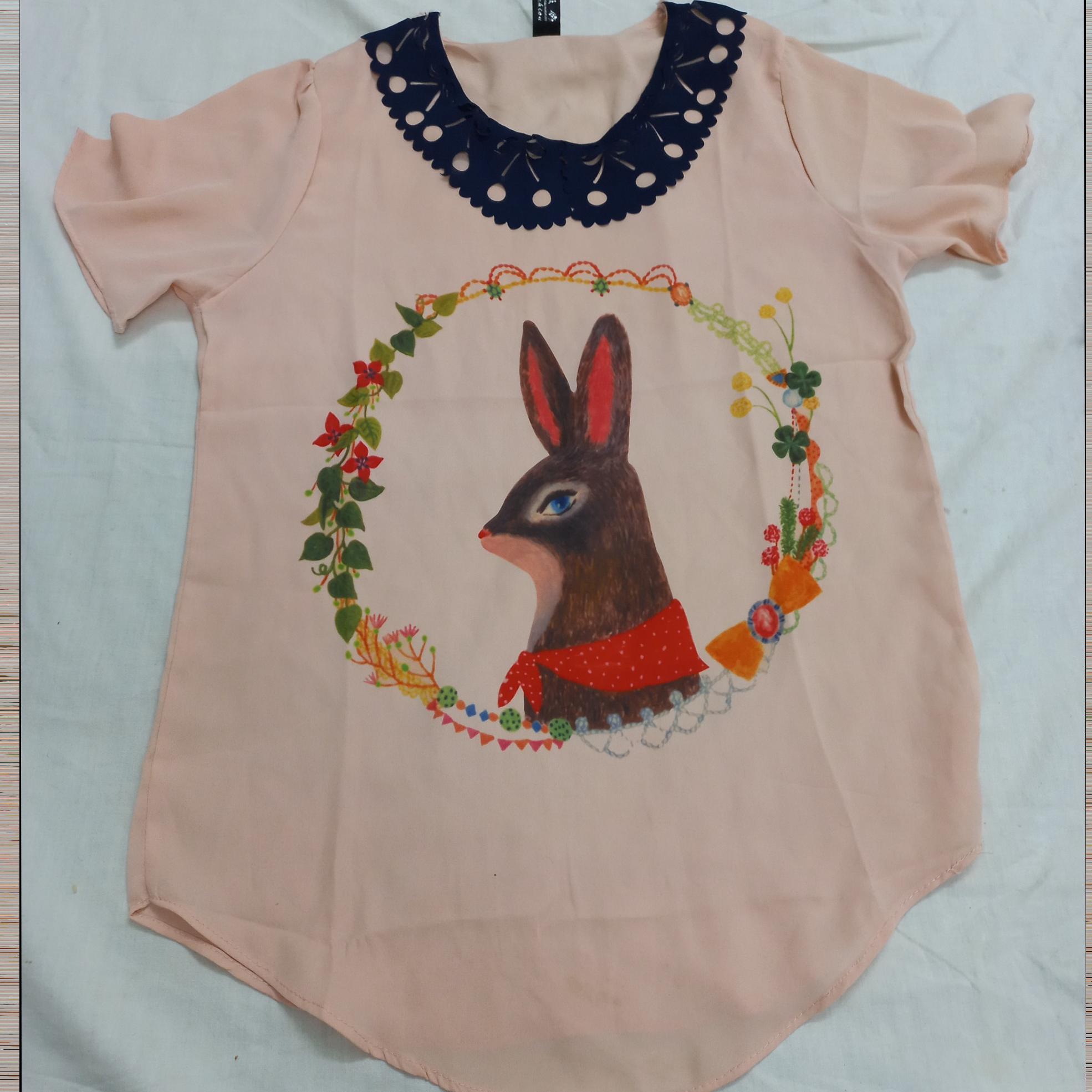 تیشرت دخترانه طرح خرگوش جنس حریر دور سینه 44