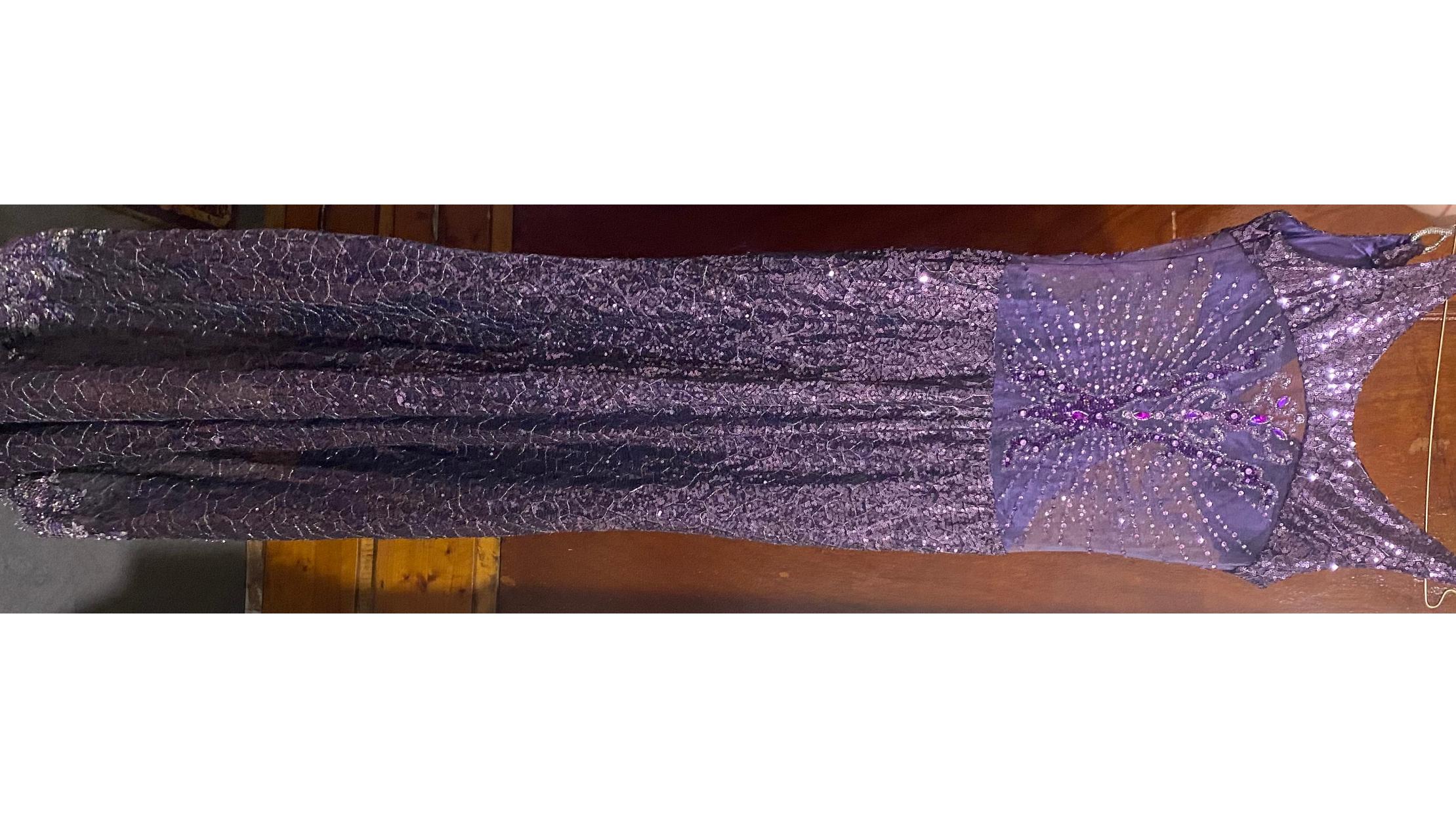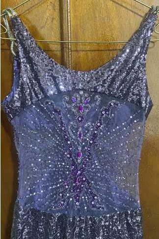 روی قسمت پهلو، پشت و لبه دامن سنگ و ملیله کار شده