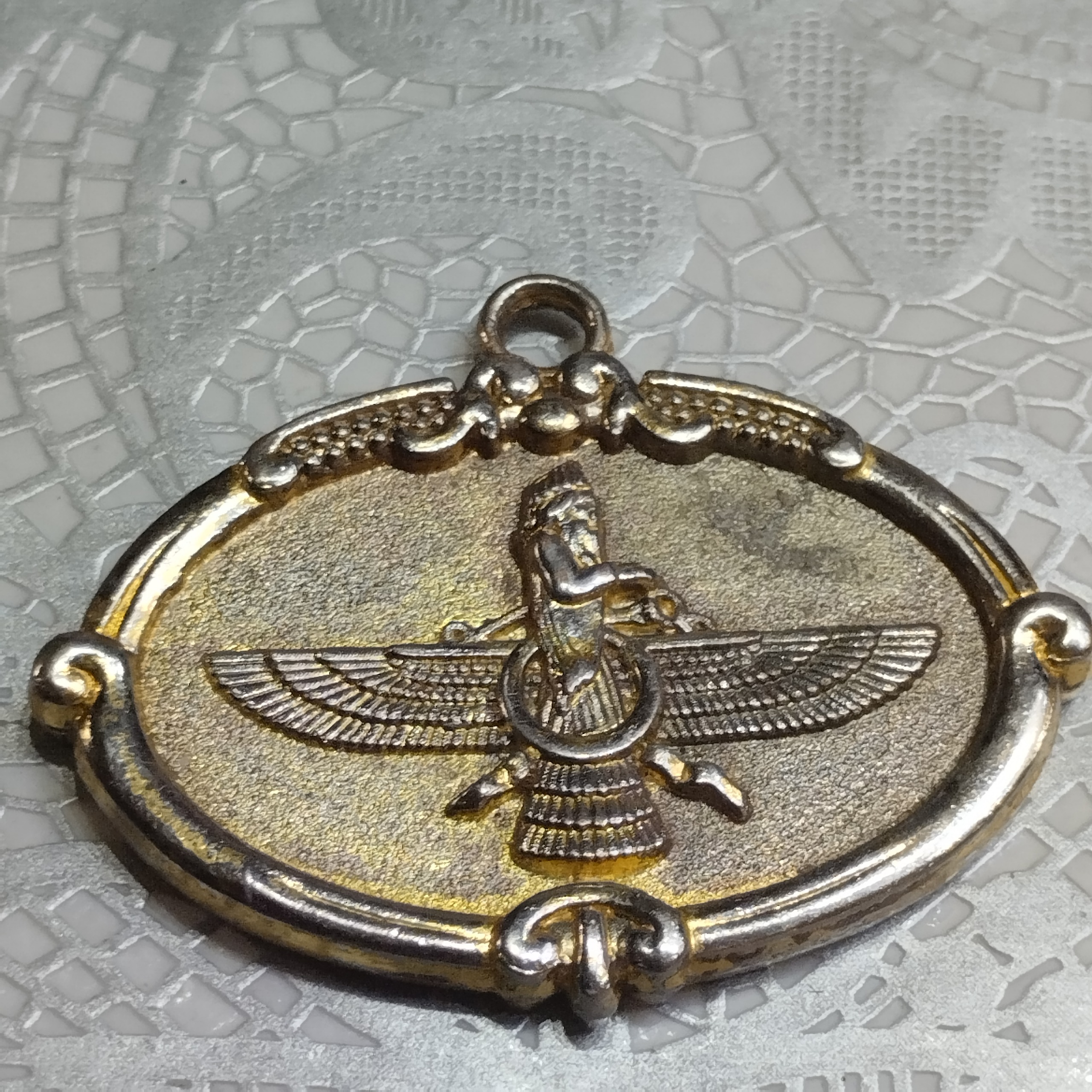 آویزگردنی خاص دو رو فروهر و پشتش ضامن آهو پهلوی
