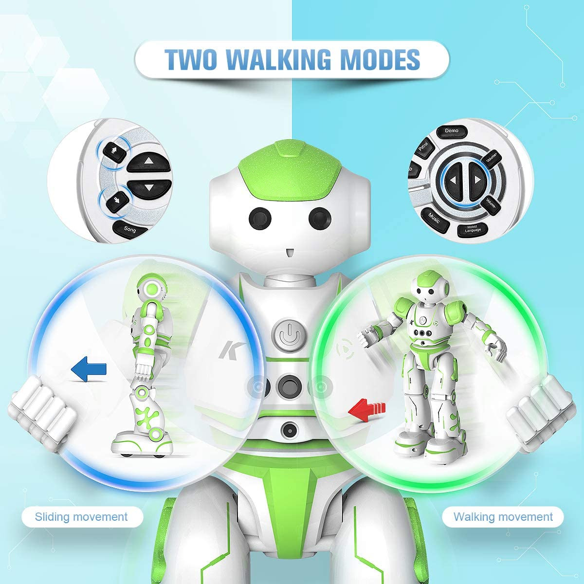 (ربات کنترل هوشمند قابل برنامه ریزی Clickwoo R2S با قابلیت کنترل حرکات، رقص و آواز سبز)