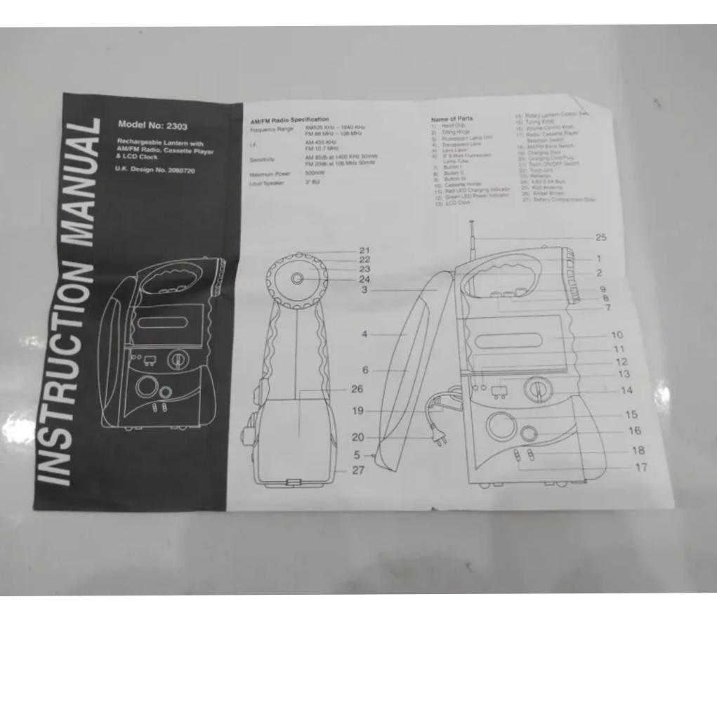 چراغ شارژی اظطراری رادیو دار کاست خور
