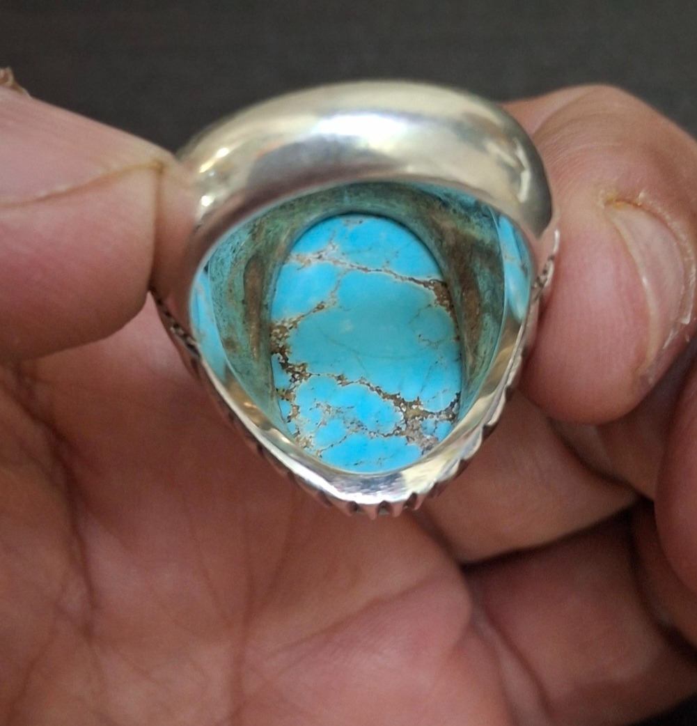 انگشتر فیروزه نیشابور مغز سنگ قواره دار تراش عبدلرضاق کلکسیونی و سنگین وزن فروش به شرط کارشناسی قیمت این انگشتر درمغازه تا 200 میلیون میرسه و واقعا دست کسی باشه اصلا نمیفروشه چون یک کاره تک و بی همتا هست این کار باید از نزدیک رویت بشه تا متوجه انگشتر بشین وزن حدوده 26 گرم