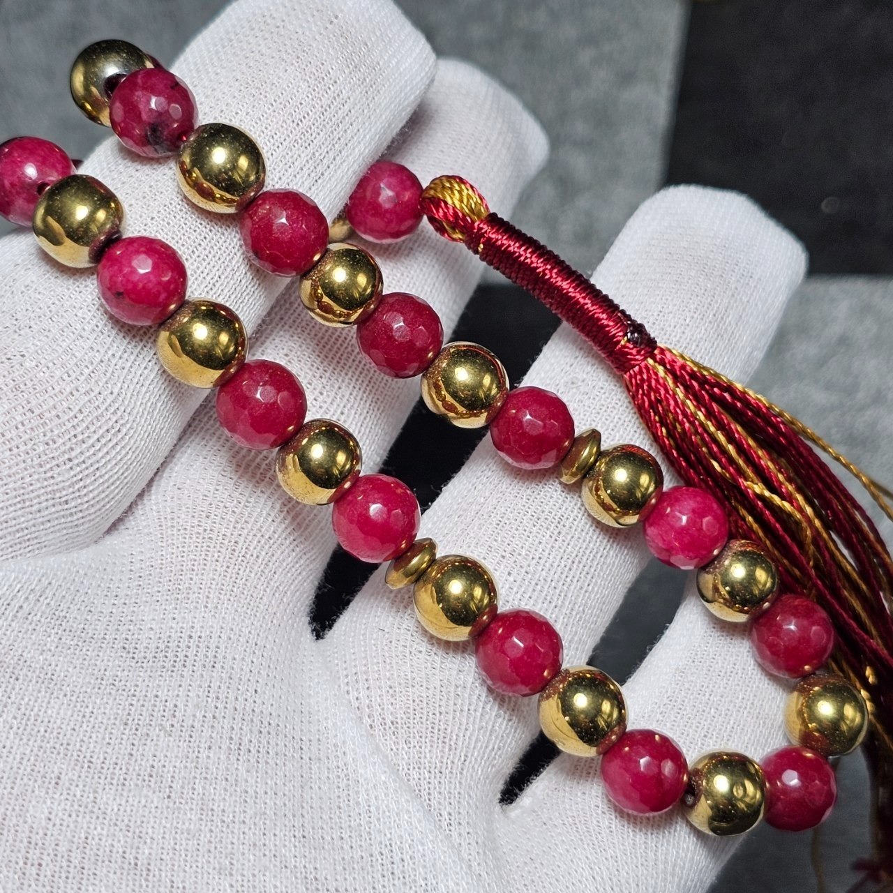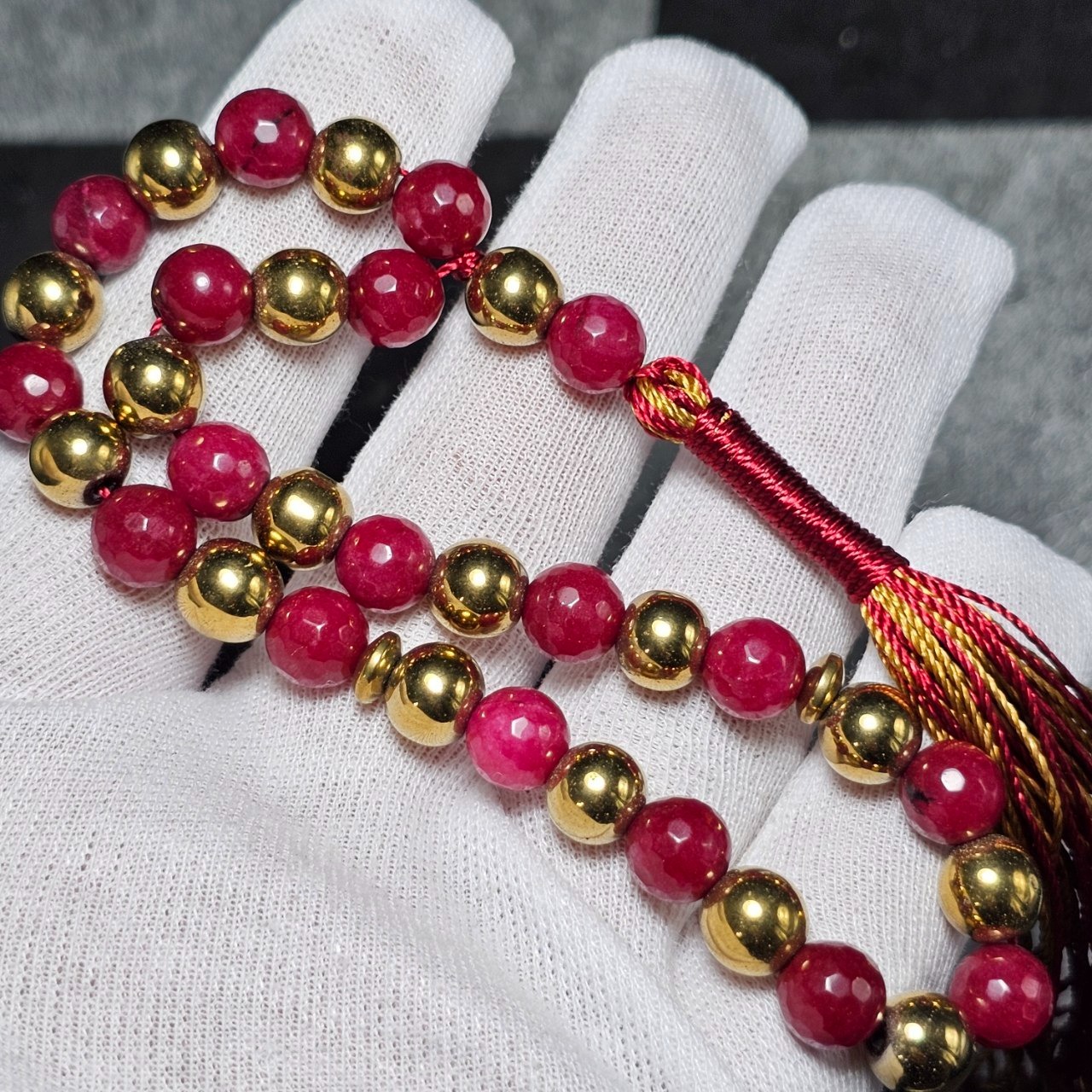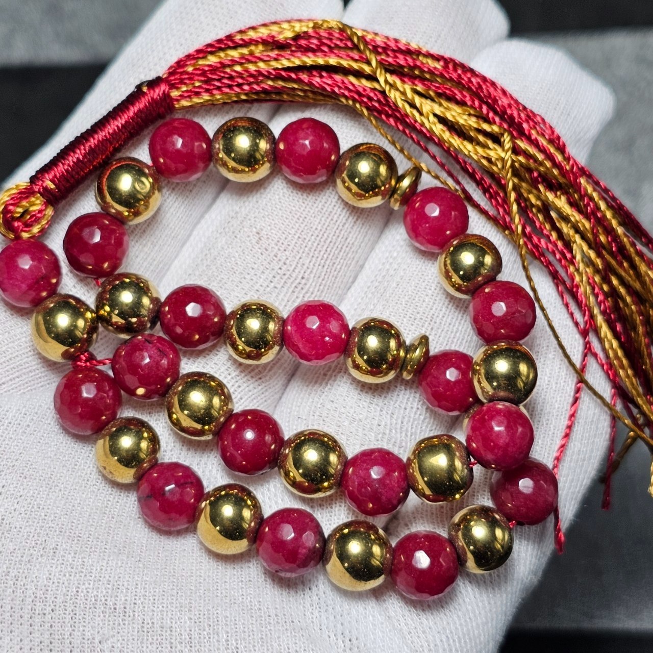 تسبیح 33 دانه سنگ جید یاقوتی و حدید معدنی