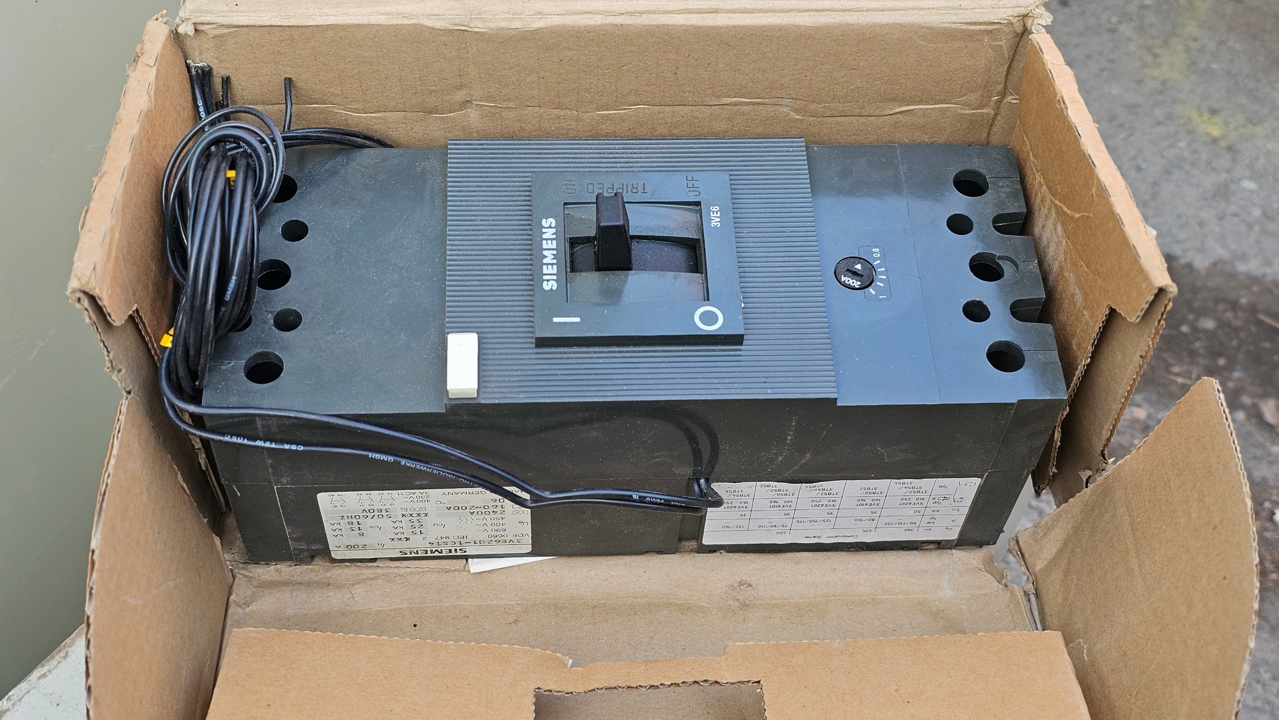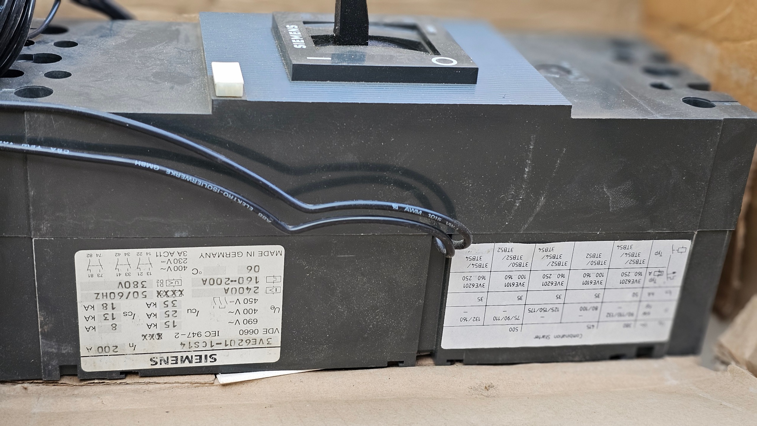 کلید اتوماتیک 200 آمپر  قابل تنظیم زیمنس همراه رله شنت و اندر سیم های رو دستگاه برای رله هاست