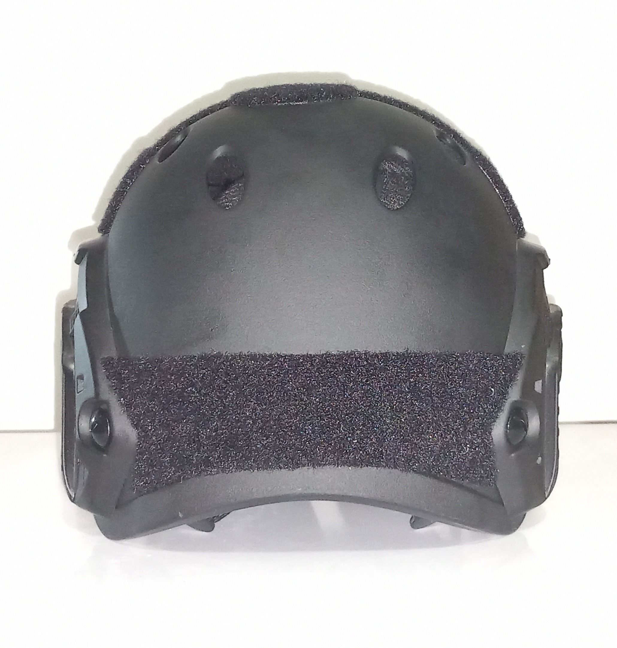 هلمت تاکتیکال مشکی دارای ریل جهت نصب دوربین ، هدست ، چراغ قوه و چسبهای ولکرو جهت نصب پچ ، آرم ،IrStrobe