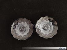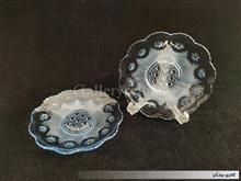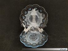 جفت پیش دستی بلوری قدیمی زیبا و رنگ آبی (48571)
