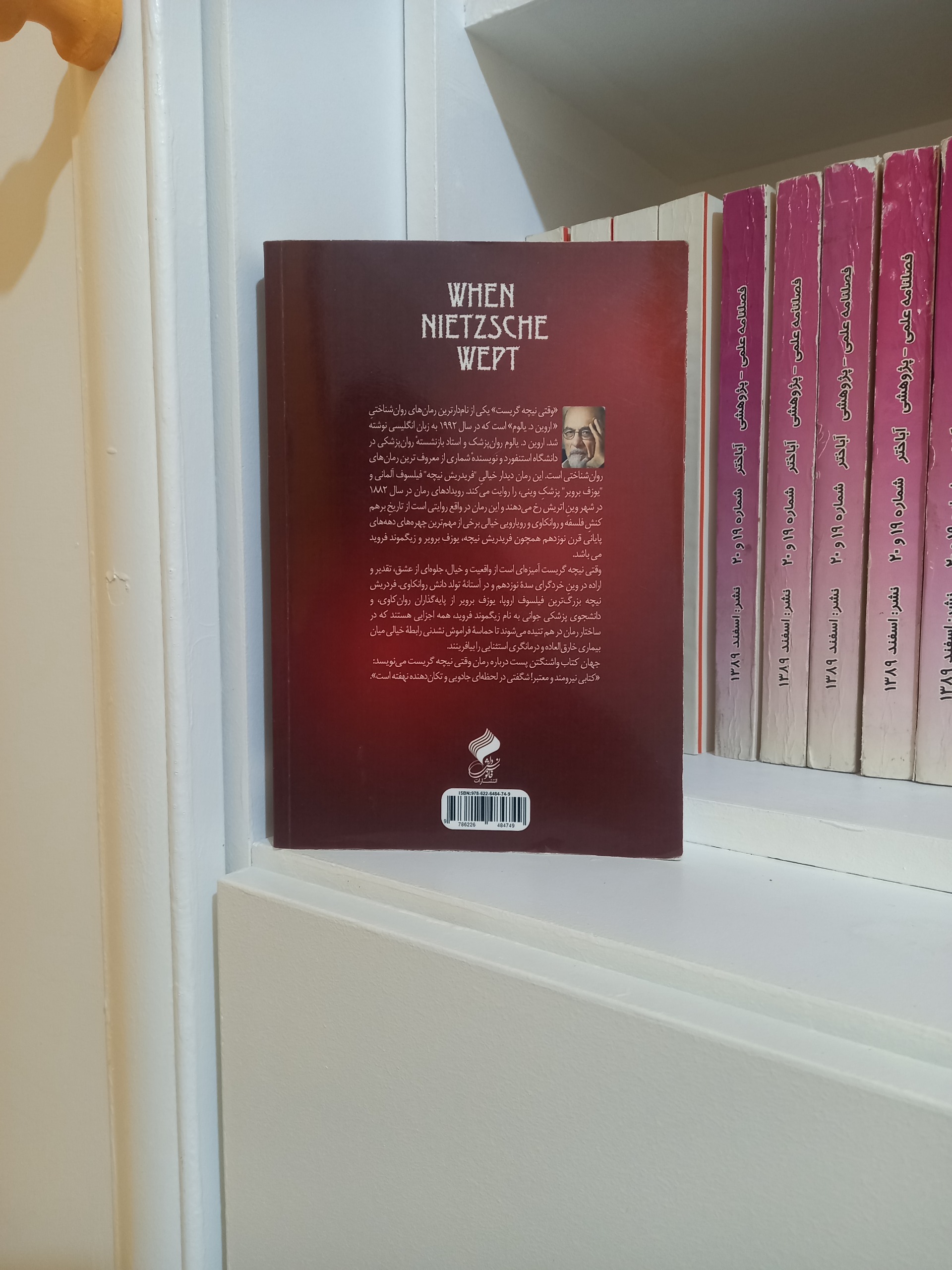 کتاب به نویسندگی اروین د.یالوم ترجمه فاطمه باروت کوب کتاب دارای جلد شومیز جنس کاغذ سفید در 496 صفحه پانصدو پنجاه و هشت گرم در ابعاد 14/5در21/5(رقعی ) در انتشارات فانوس دانش به چاپ دوم رسیده است.