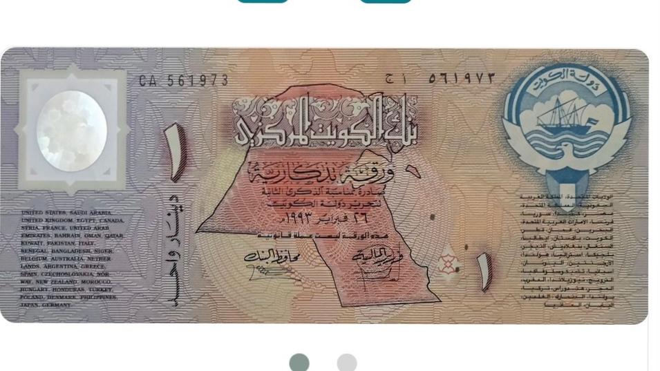 اسکناس کویت 1 دینار کویت یادبود جنگ عراق و کویت