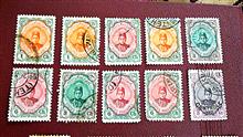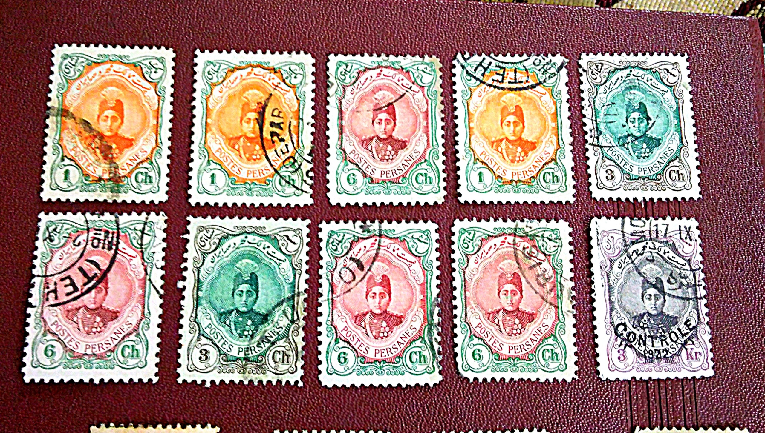 تمبر زیبای احمد شاه قاجار مهر کمیاب اصل 10 عدد