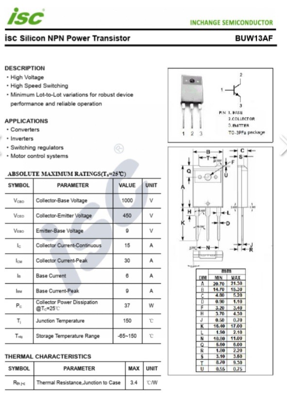 ترانزیستور 450V/ 15A BUW13AF ساخت فیلیپس