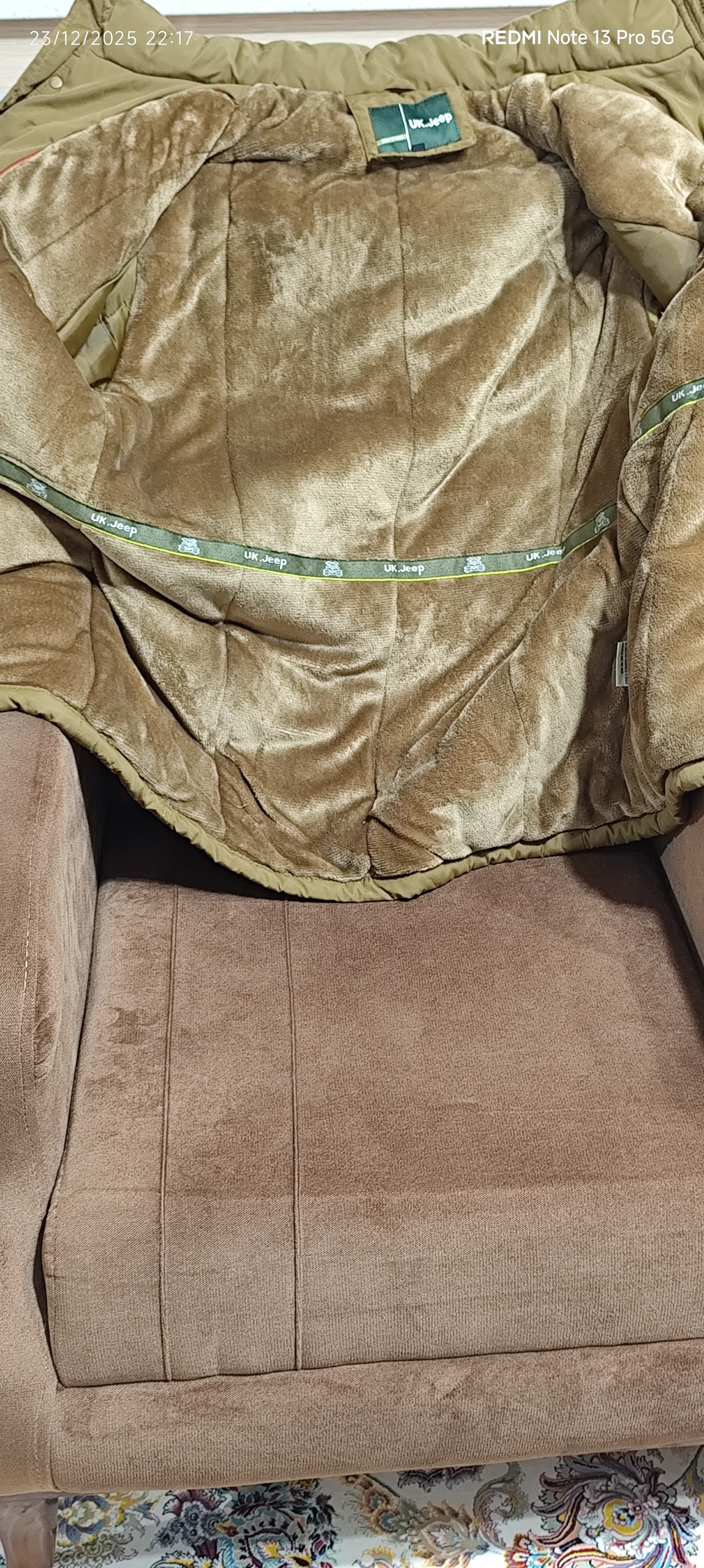 نیم اور جیپ خز دار برند Jeep سایزx5رنگ خاکی نو نو چهار جیب جلو دو جیب داخل به وزن 80 تا 110 کیلو و قد 175 به بالا بسیار عالی و مناسب است نوع جنس برزنت ضد آب