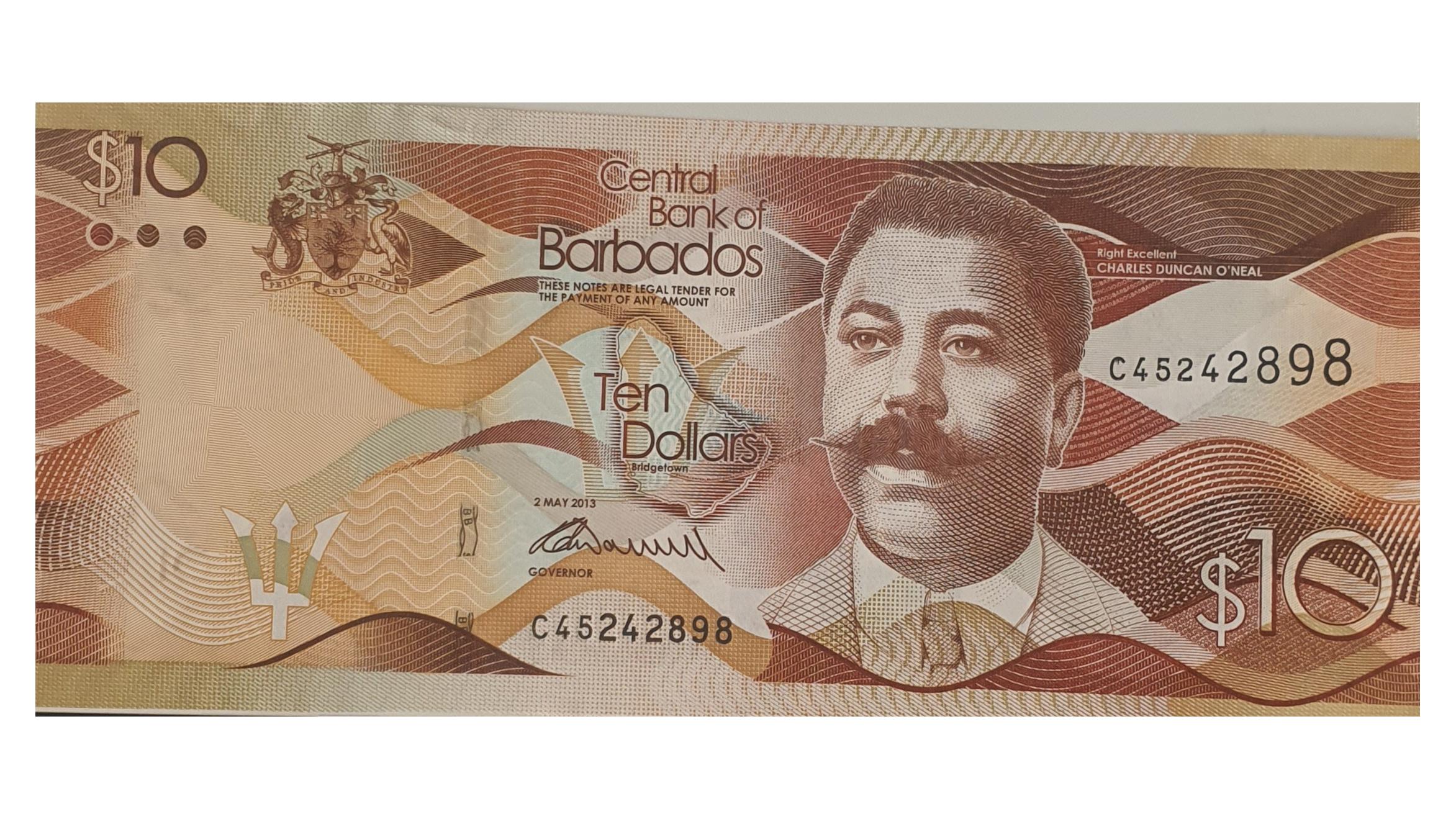 اسکناس 10 دلار 2013 باربادوس