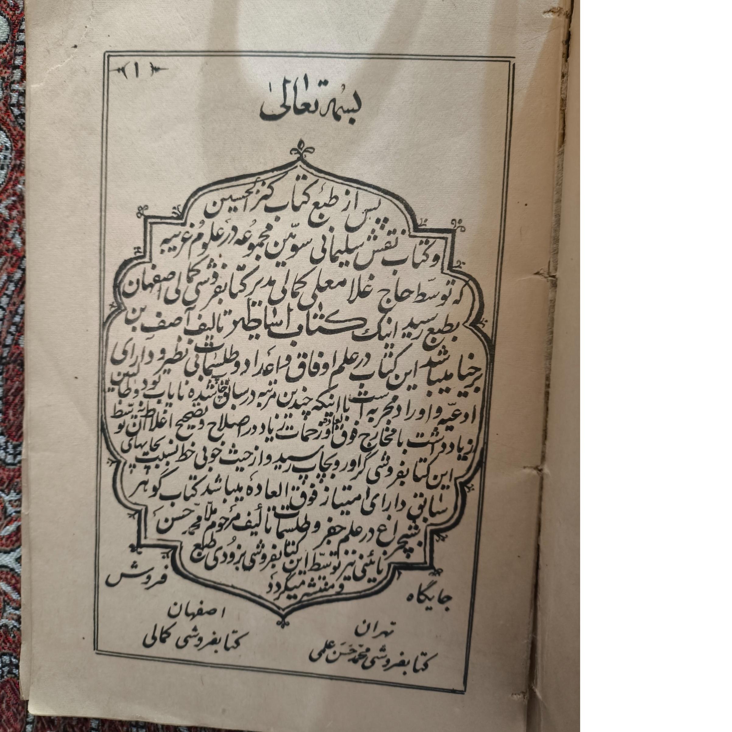 کلیات اساطیر تالیف آصف بن برخیا در علم اوفاق و اعداد و ات و ادعیه و اوراد مجریه کتاب قدیمی ولی صفحات عالی