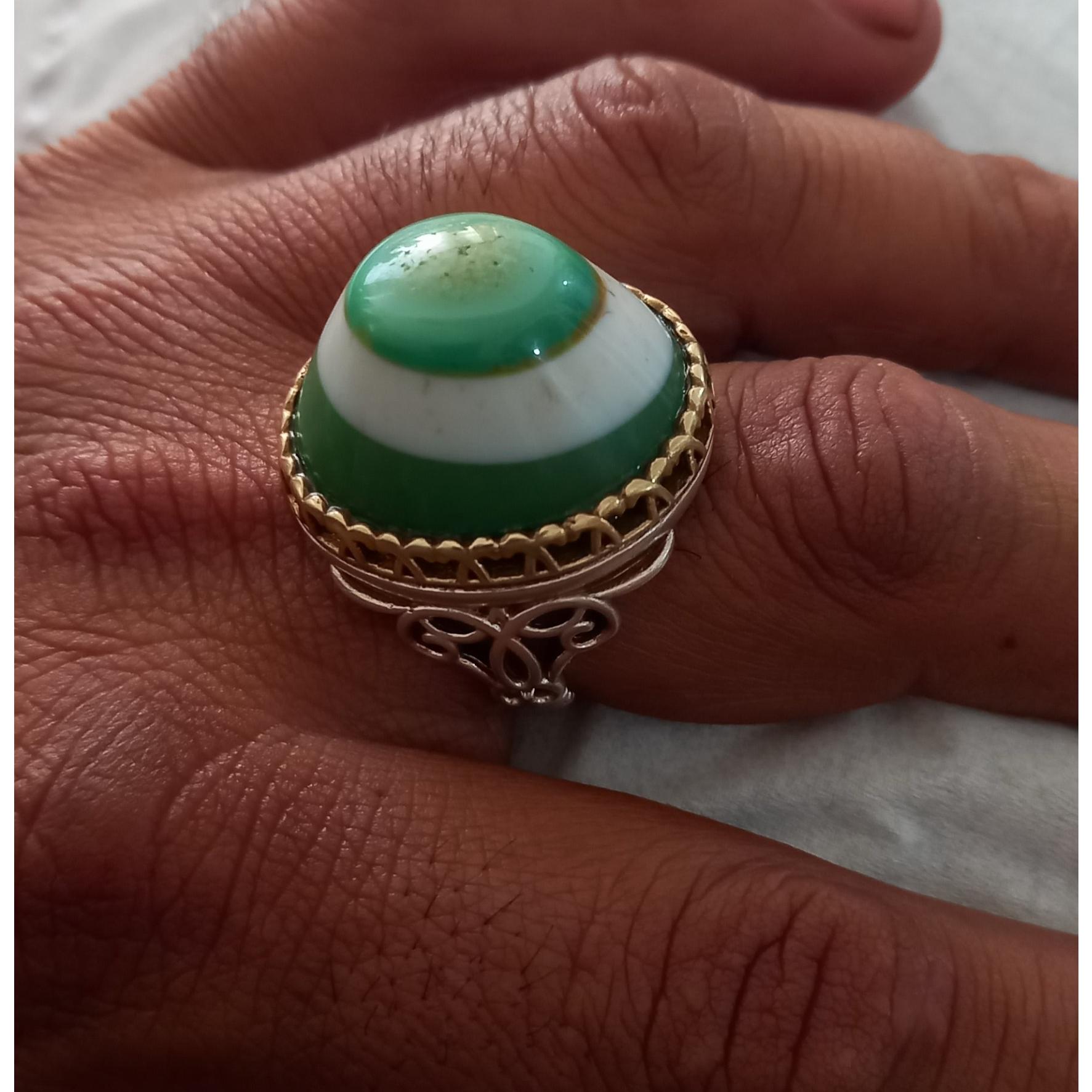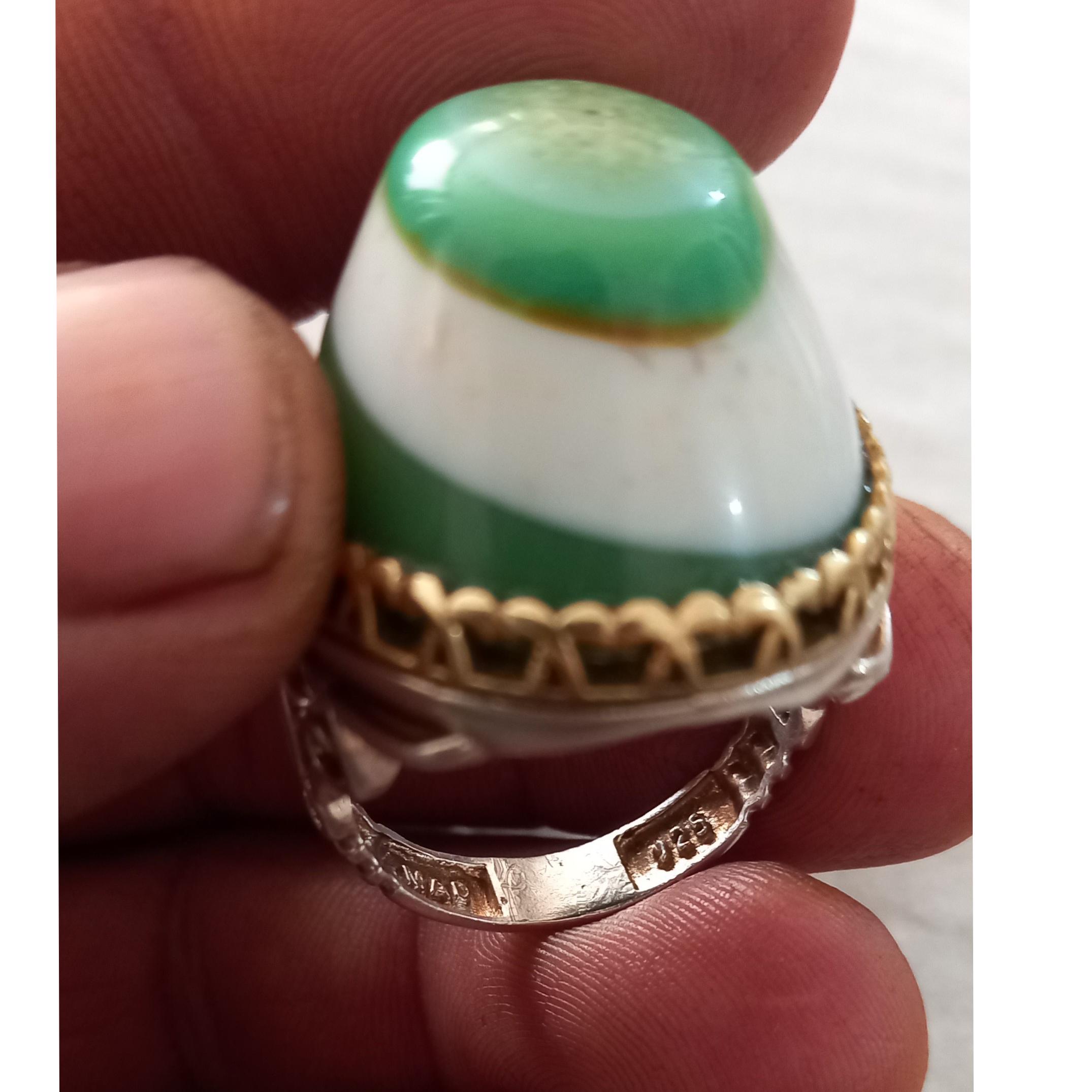 انگشتر  نقره  نایاب  سه  پوست  سفید سبز نایاب در ایران وزن 26گرم