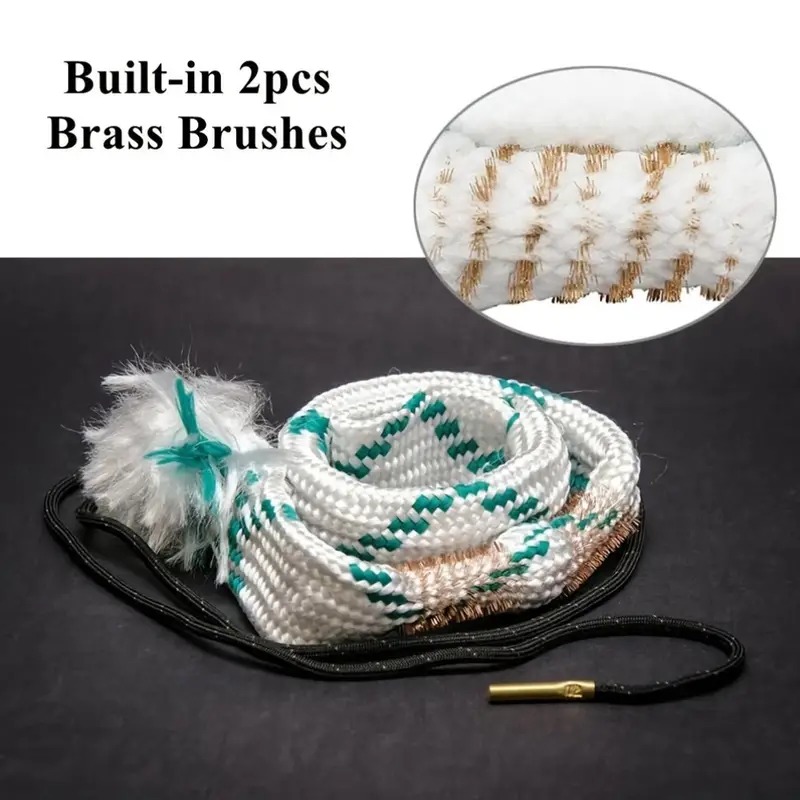 فرچه سیمی رسوبات سخت و سرب باقی مانده داخل لوله سلاح را شل و طناب پارچه ای بافته شده به دنبال آن آن ها را جمع میکند.