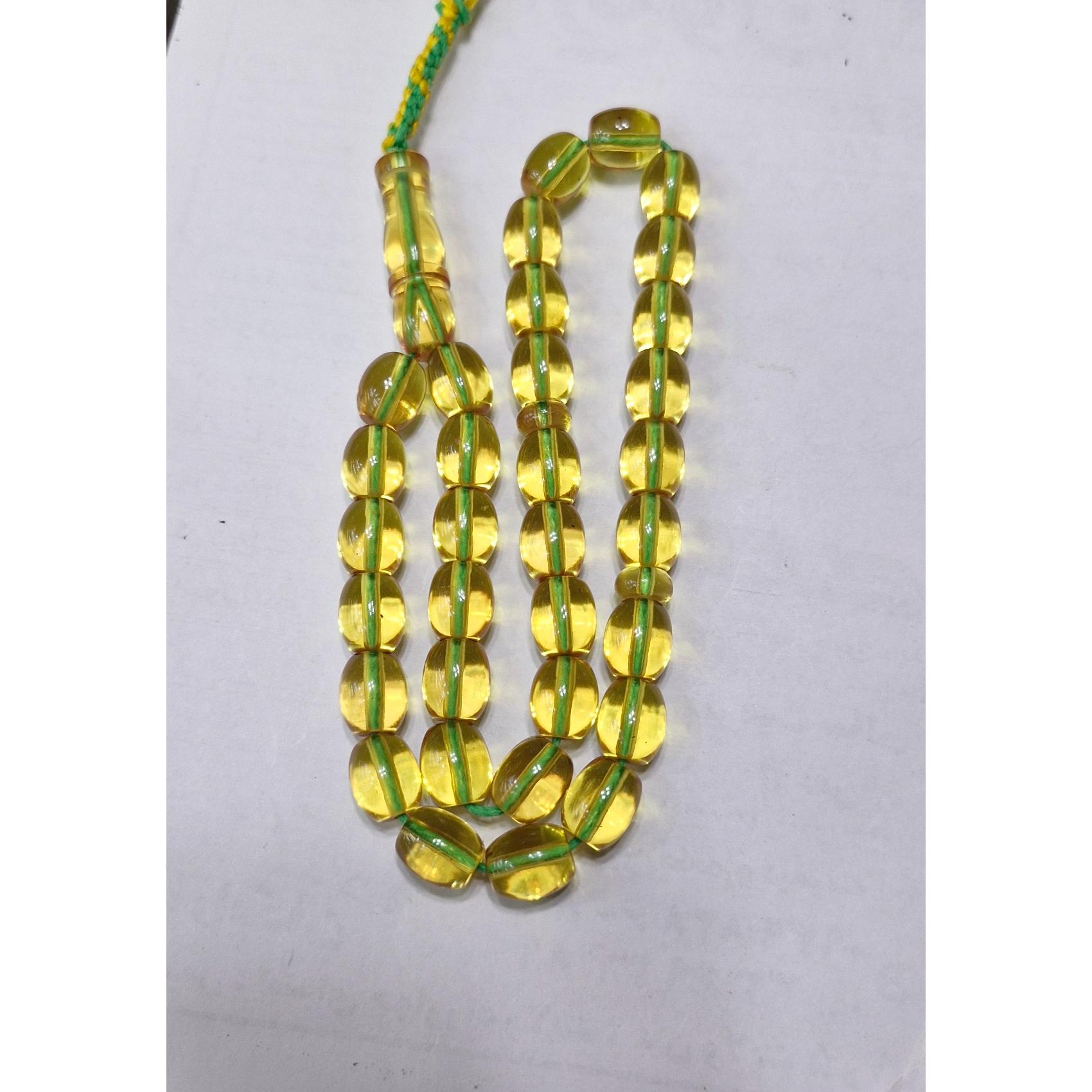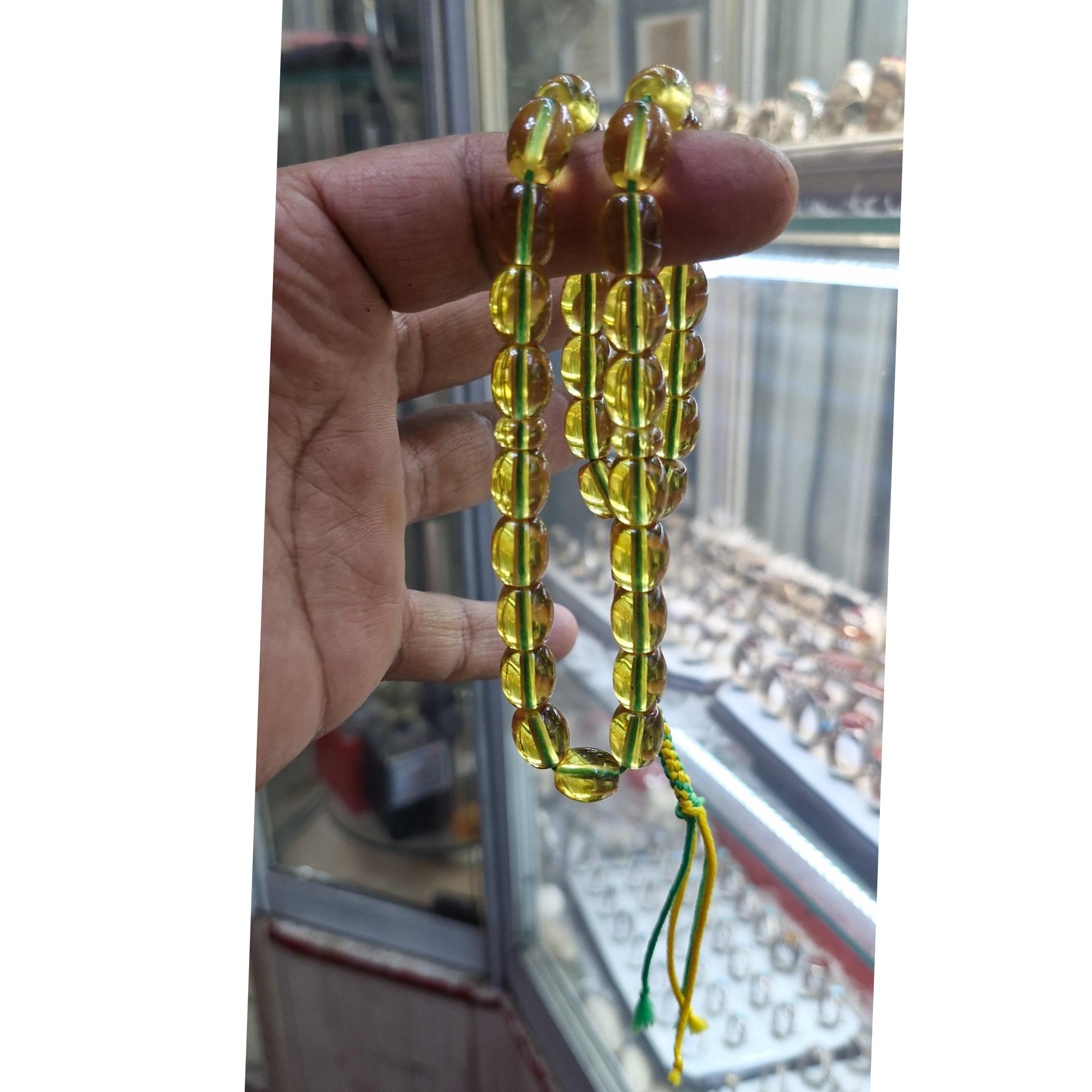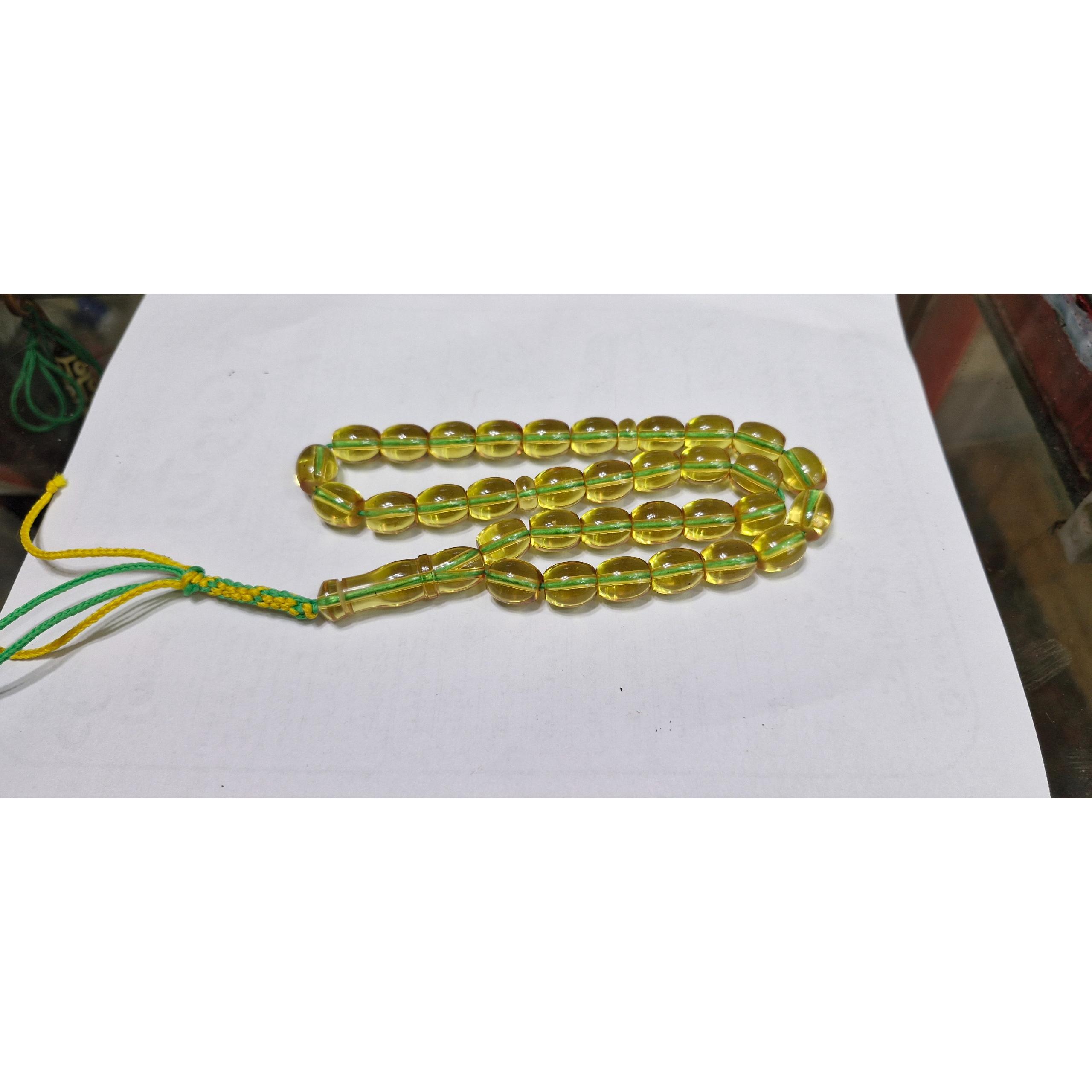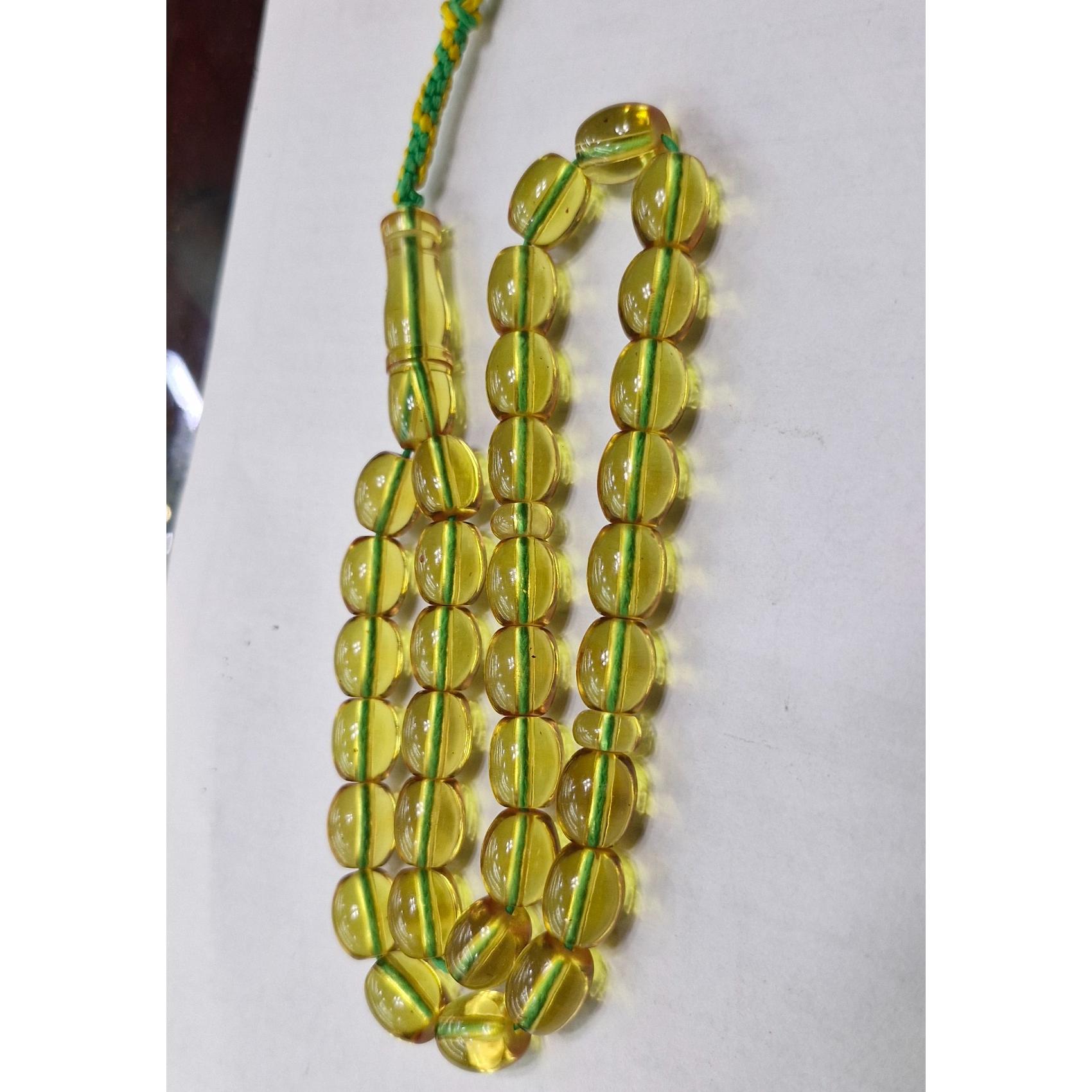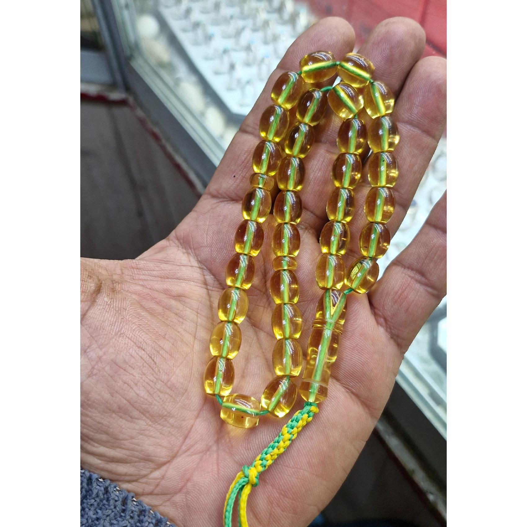 تسبیح سندلوس سی و سه دانه شمش آلمان تراش دست رنگ بین سبز کم رنگ.ونباتی وزن29 گرم طول 23سانت بسیار خوش دست سایز کارمندی