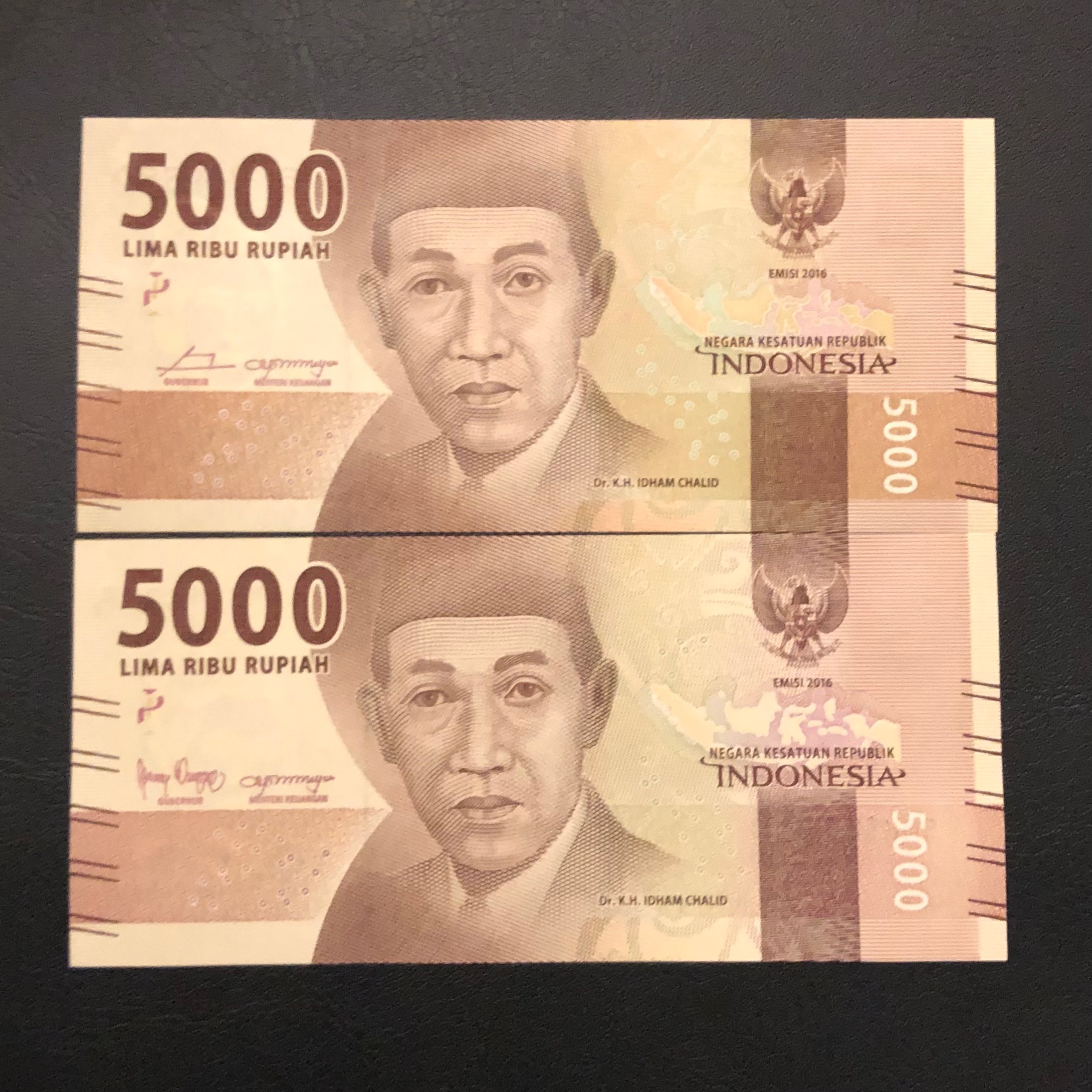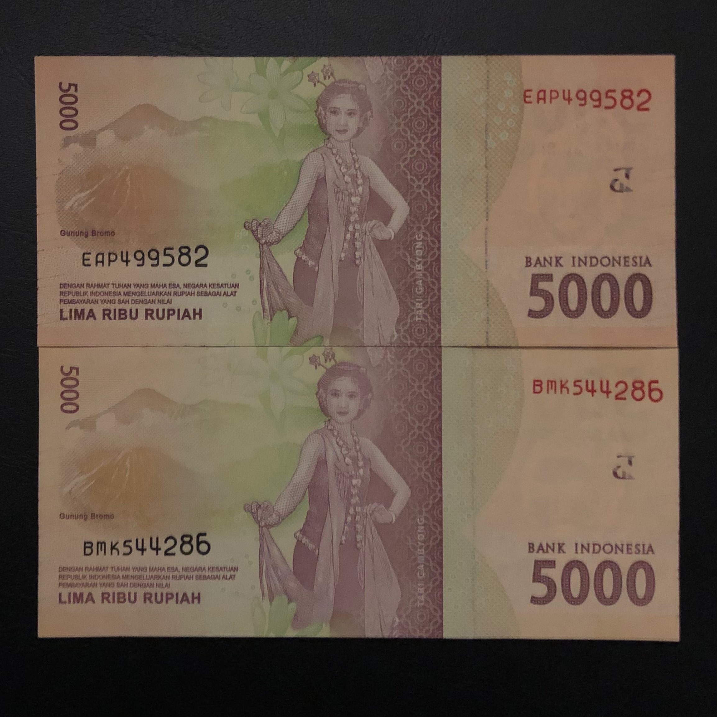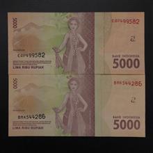 دوعدد اسکناس بانکی 5000روپیه اندونزی باامضا متفاوت
