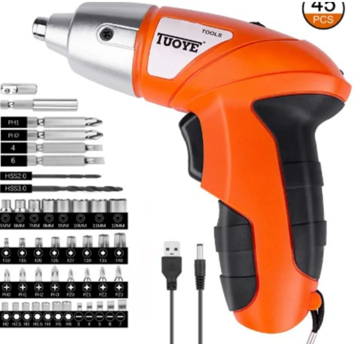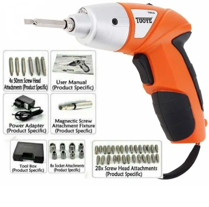 پیچ گوشتی شارژی فوق یکی از محصولات تولیدی شرکت «تیو» (tuoye) است. یکی از مهمترین ویژگیهای این محصول تعداد بالای سریهای پیچگوشتی آن است که در اشکال مختلف دوسو، چهارسو، دوازدهگوش، ستارهای، آلنی، چهارگوش،بکسی و... طراحی شدهاند. با وجود این مجموعه بسیاری از پیچ و مهرههای مختلف را میتوان باز و بسته کرد. این سریهای پیچگوشتی روی پیچگوشتی شارژی نصب میشوند و هر کدام نقش یک پیچگوشتی مستقل را بازی میکنند. پیچگوشتی شارژی فوق برای تامین انرژی به یک باتری شارژی نیکل کادمیومی مجهز است که ولتاژی برابر 4.8 ولت دارد. ظرفیت این باتری 600 میلیآمپر ساعت است و با کمک نشانگری که روی دستگاه تعبیه شده است، میتوان از میزان شارژ آن آگاه شد. از دیگر مزایای این محصول برای افزایش دید کاربر به لامپی الایدی مجهز شده است