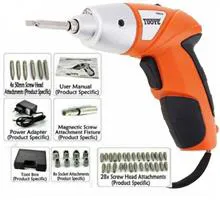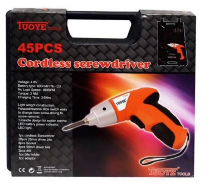 مناسب باز و بسته کردن انواع پیچ به همراه دفترچه،آدابتور شارژ و 44 عدد نوک پیچگوشتی در مدلهای دوسو،چهارسو،شش گوش،ستاره ایی،رابط بکس و مته ساخت کشور چین مناسب کارهای ظریف دارای کیف سامسونت مخصوص و سامسونتی BMC سیستم چپگرد و راستگرد دارای نشانگر شارژ سرعت گردش 220 دور در دقیقه سبک و استفاده راحت برای کاربر باتری / 4.8 ولت