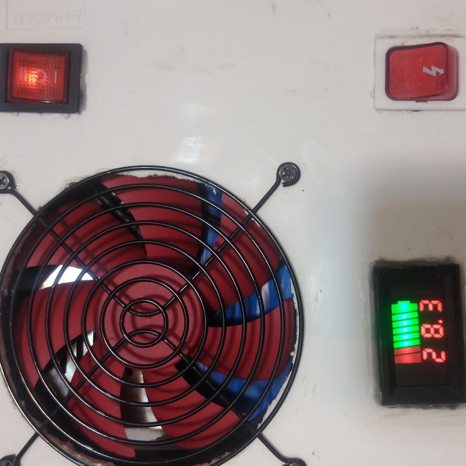 پس از اتمام شارژ کلید سمت چپ را خاموش کنید اگر عدد 12/5 به بالا باشد باتری سالم است 12 باشد باتری نیمه عمر و کمتر از 12 باتری ضعیف و رو به خرابی هست