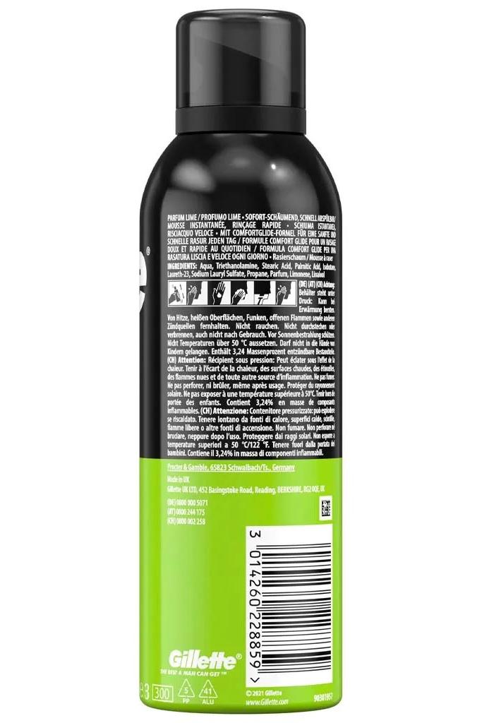فوم اصلاح ژیلت اصل ساخت انگلیس حجم 200 میل رایحه لیمویی تاریخ انقضا برج 5 سال 2027.