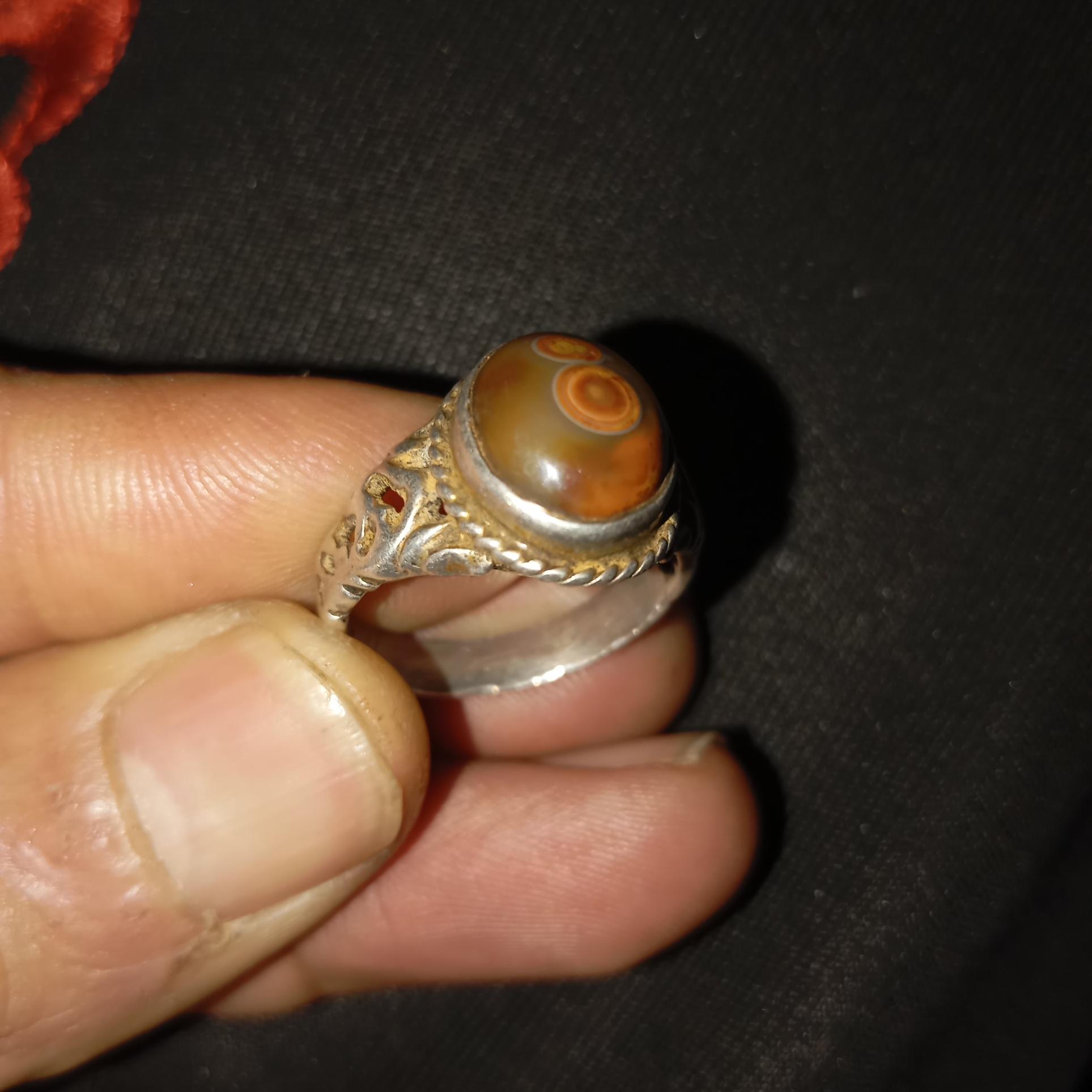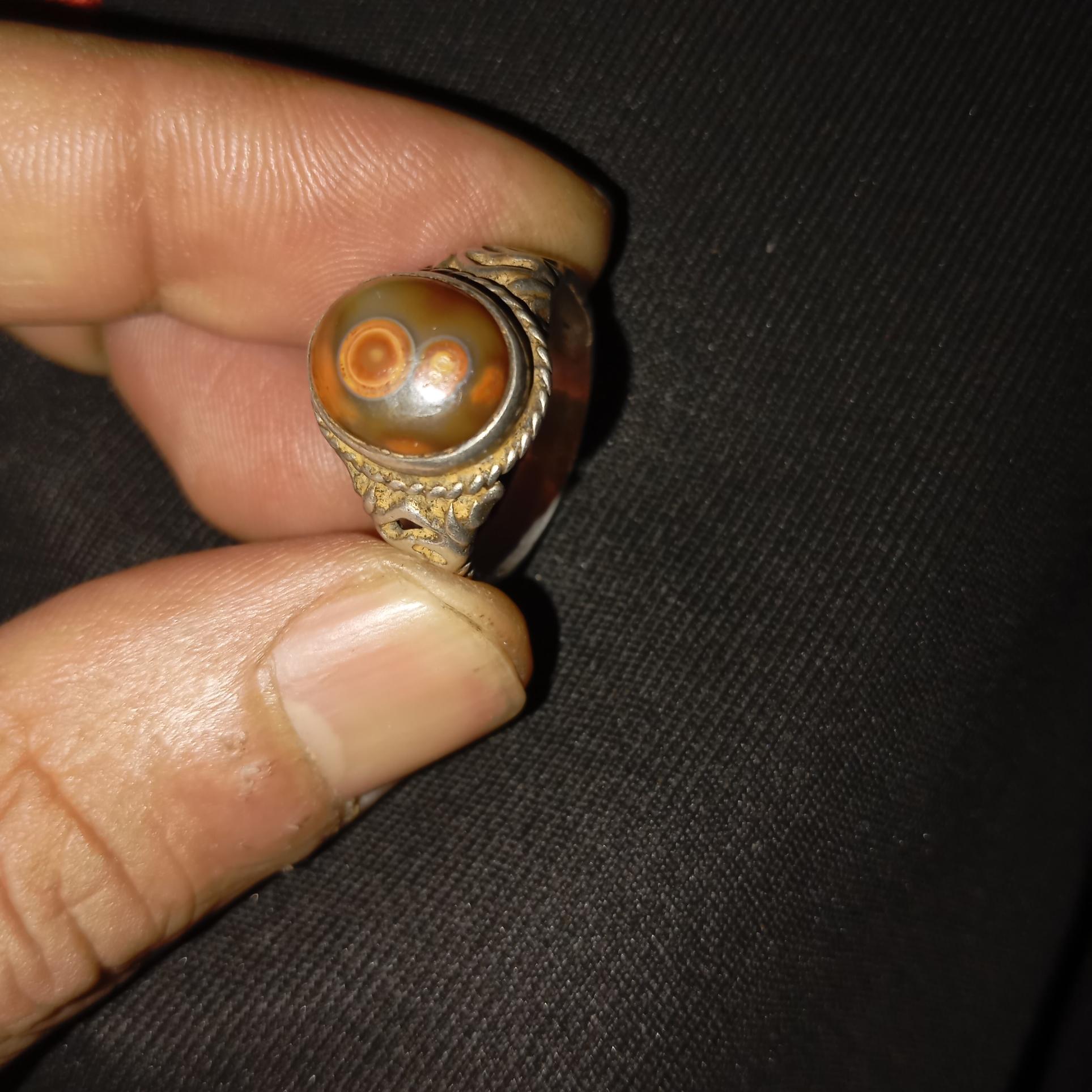 انگشتری کهنه باباقوری دوچشم وسط که متغیر شکل هرمدت زمان رنگ چشم تغییرمیکند انرژی دار